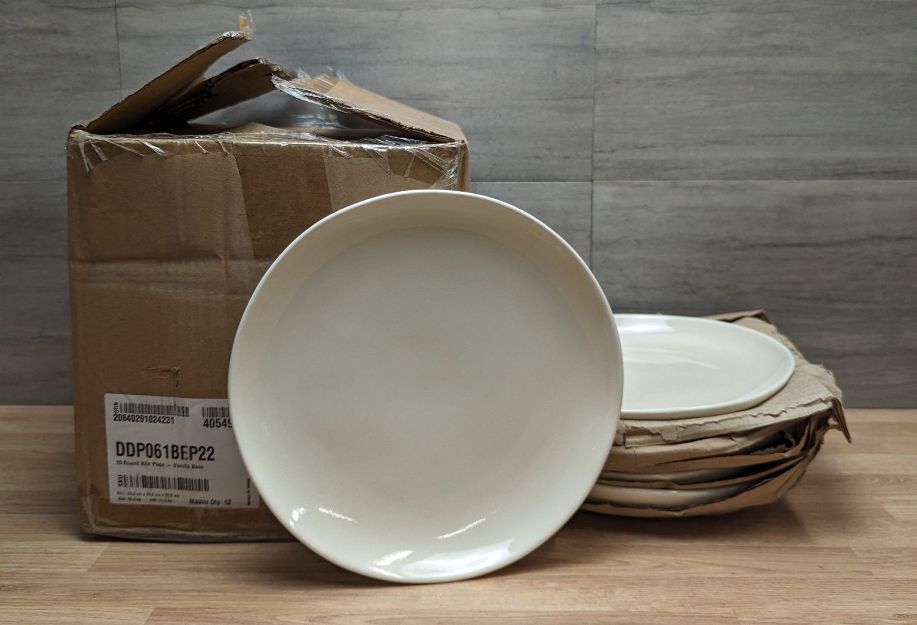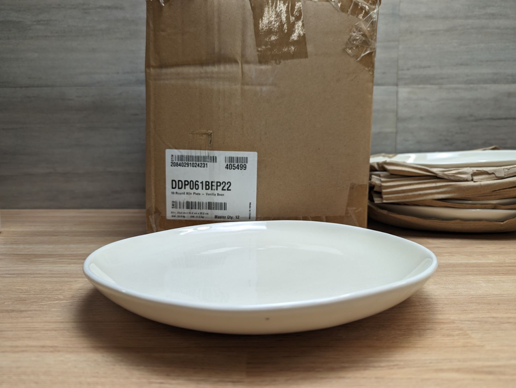 10" Round Kiln Porcelain Plates, Vanilla Bean - Lot of 12 (1 Case) &Front 3