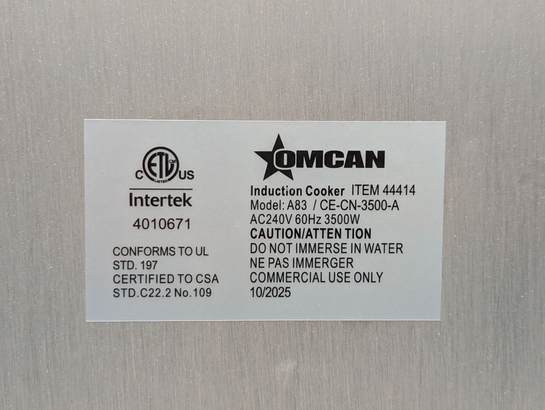[New in Box,] Electrical: 240V/60Hz/1Ph, Power: 3500W, heavy-duty commercial rating