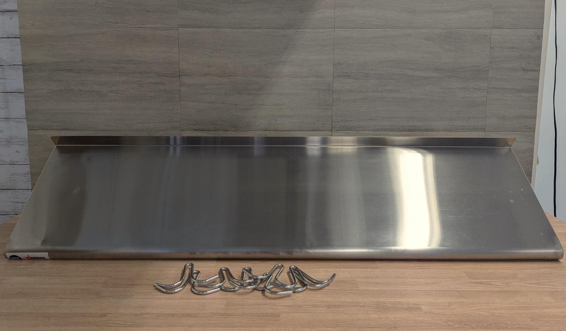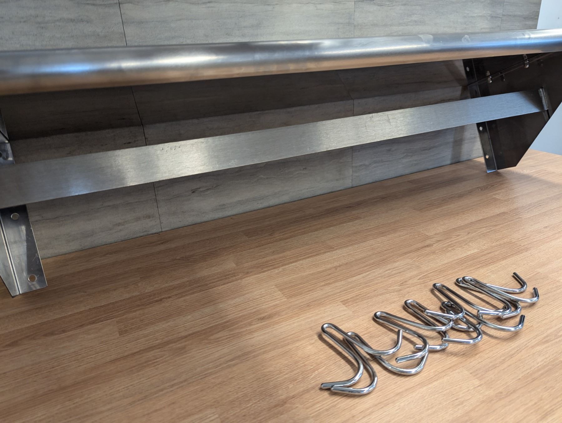 12" x 48" Pot Rack With Shelf & 9 Hooks, Front Side