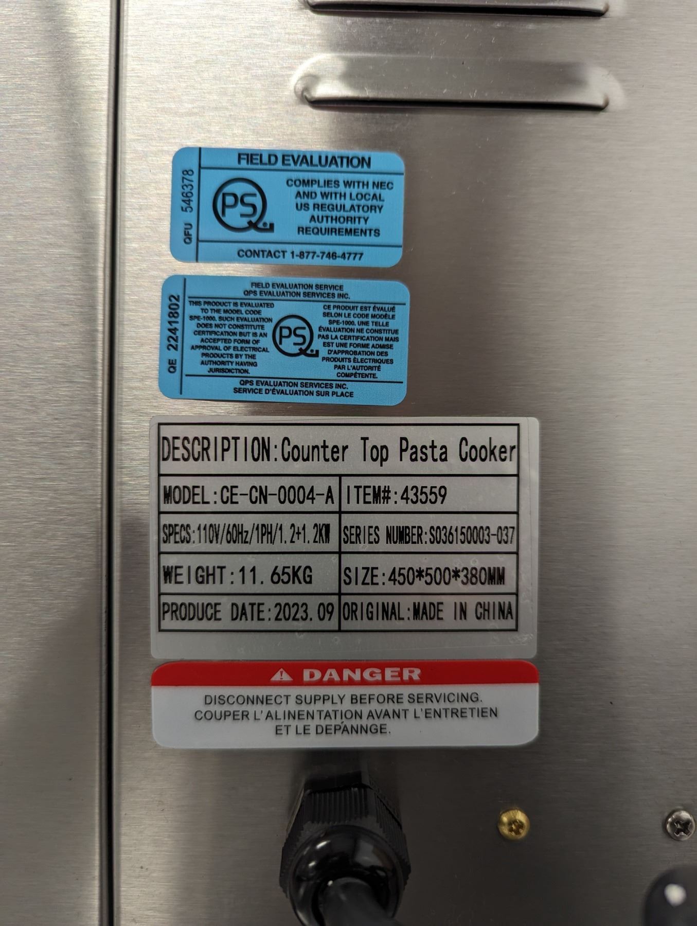 [New in Box,] Baskets: 4, Basket Dimensions (DiaH): 5.43” x 5.5” (138 x 140 mm) | Over-all Height with Handle: 13” (330 mm) Max Temperature: 110°C (230°F) Power: 1,200 + 1,200 W, Electrical: 120V / 60Hz / 1Ph