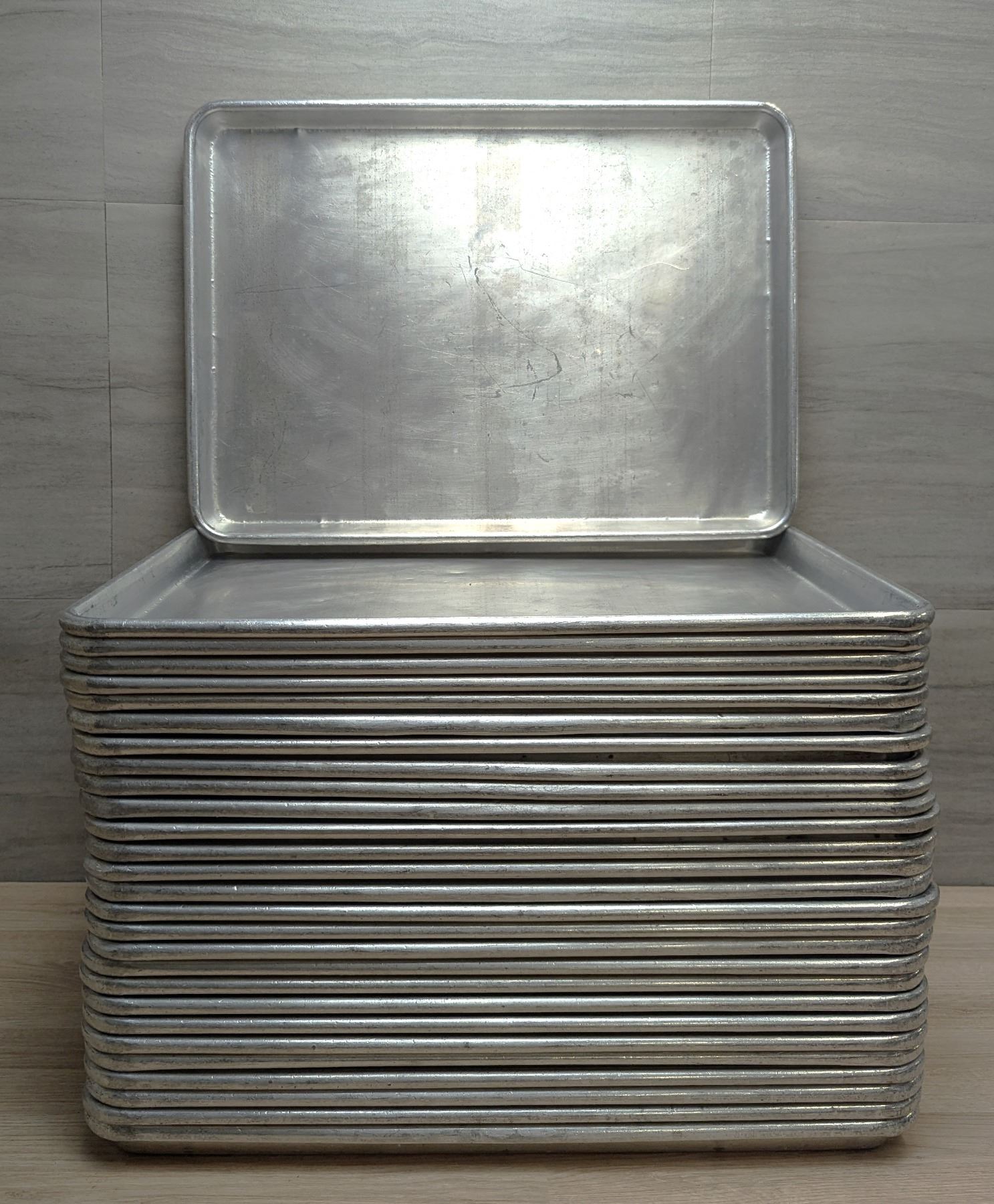 13" x 18" Aluminum Bun Pans - Lot of 28 | Front E