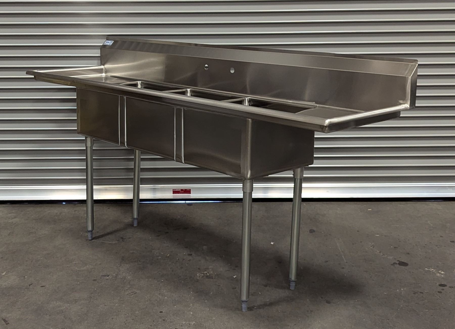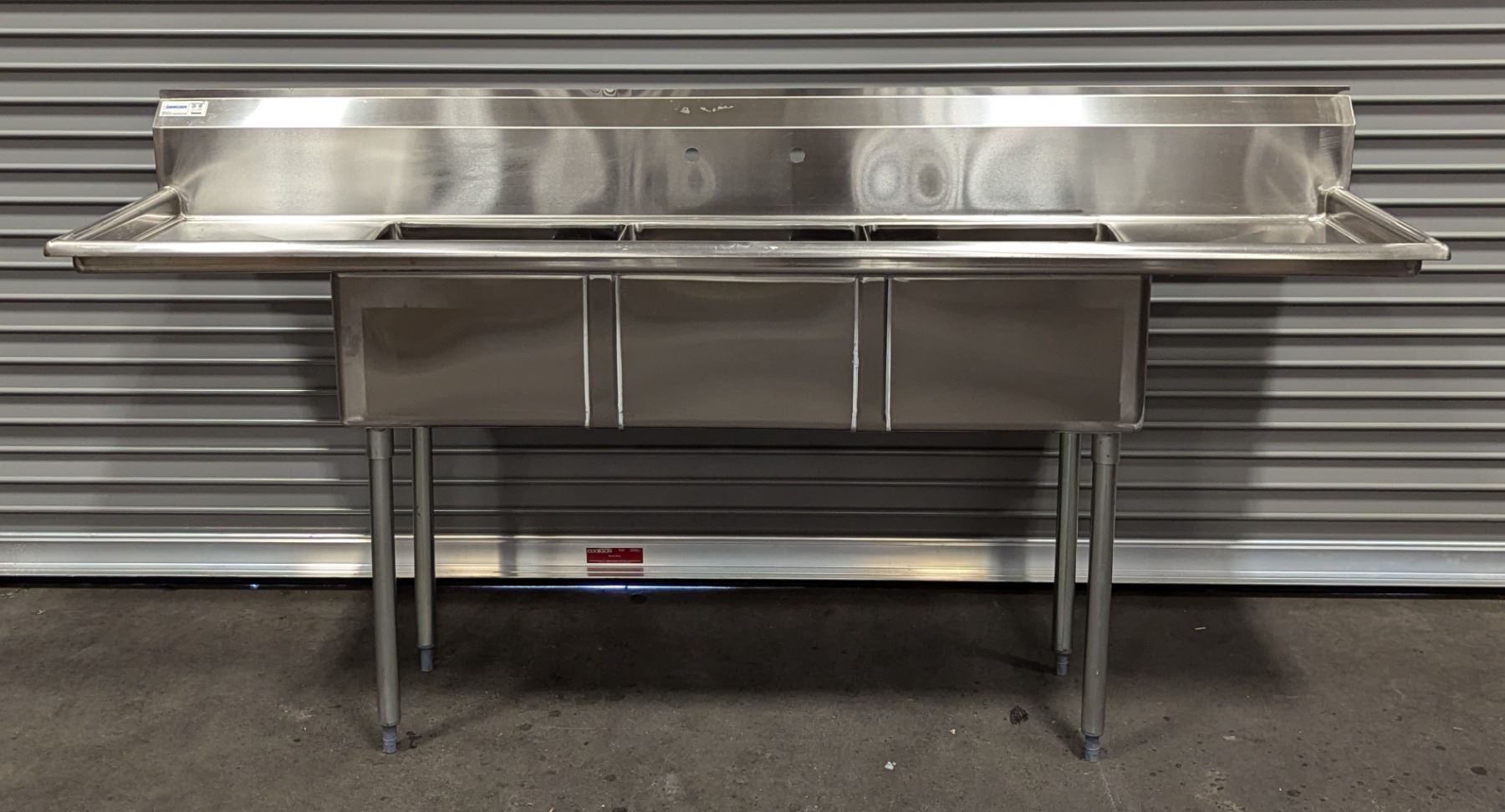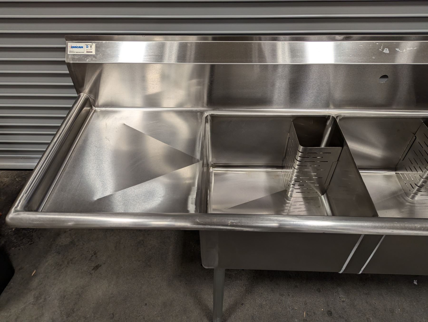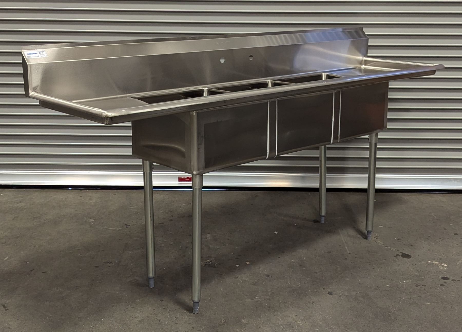 18" x 18" x 11" Three Tub Sink W/Drainboards, Omcan 22117 |J-Sink/L8