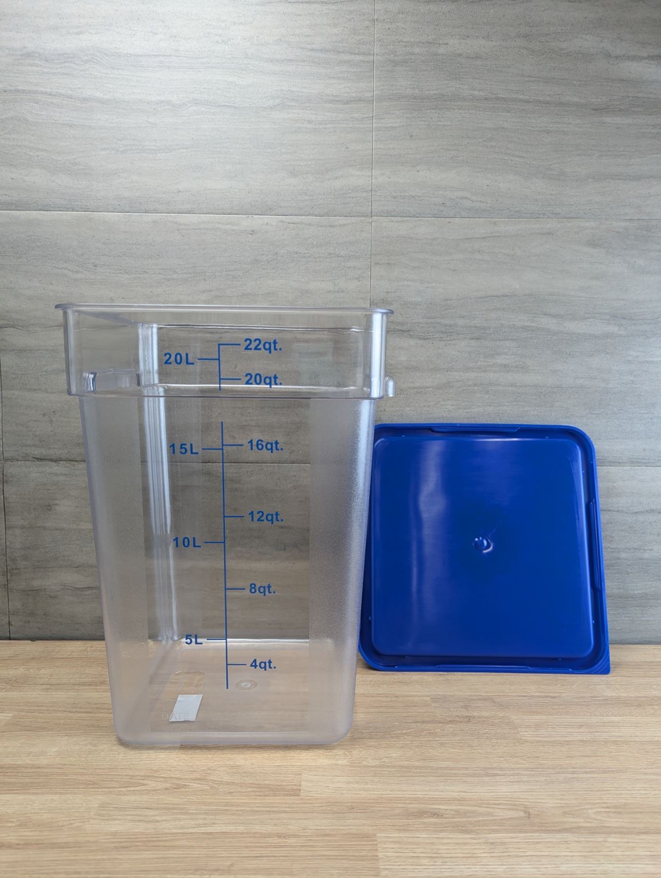 22qt Clear Food Storage Bin W/Blue Lid