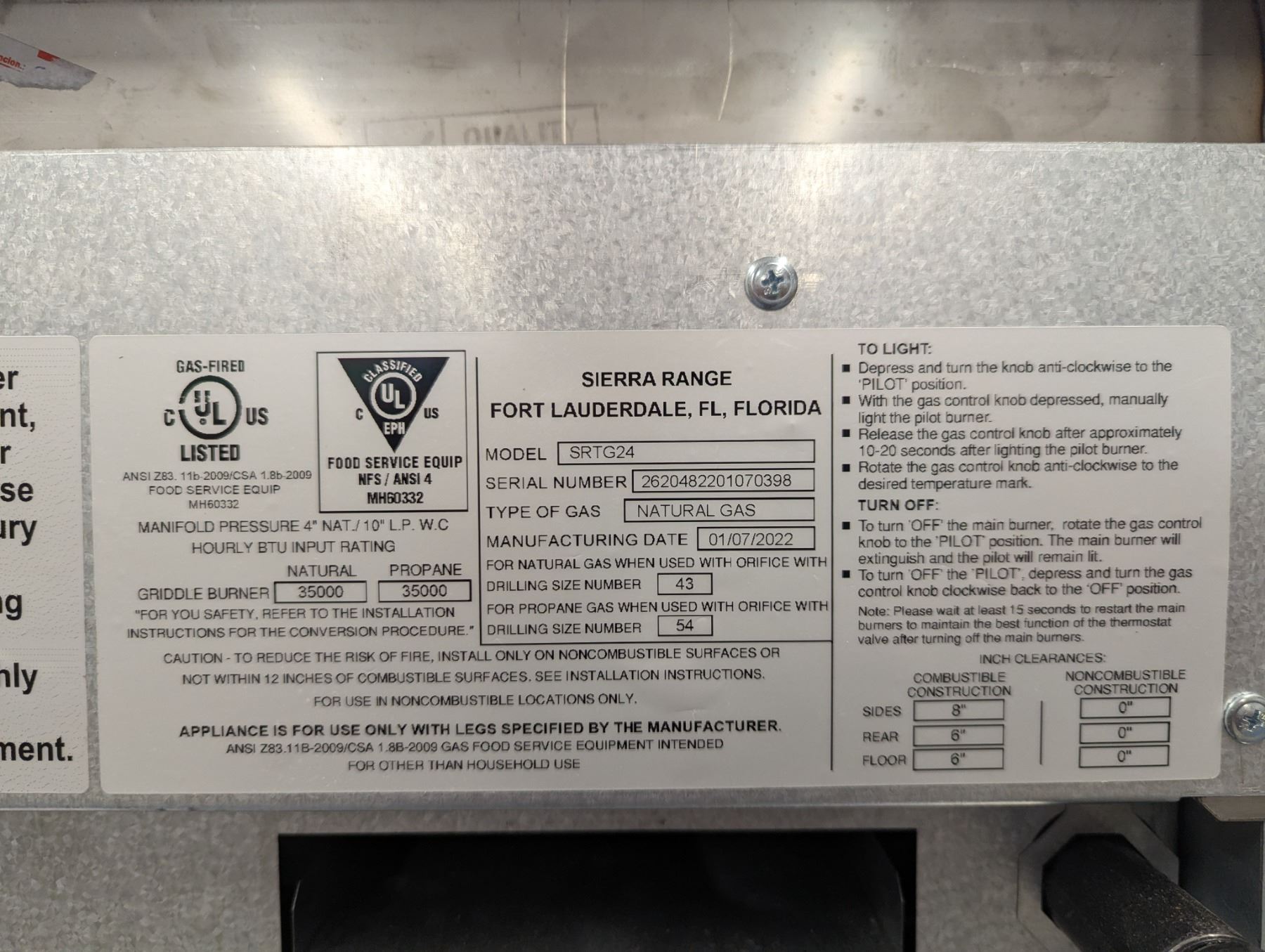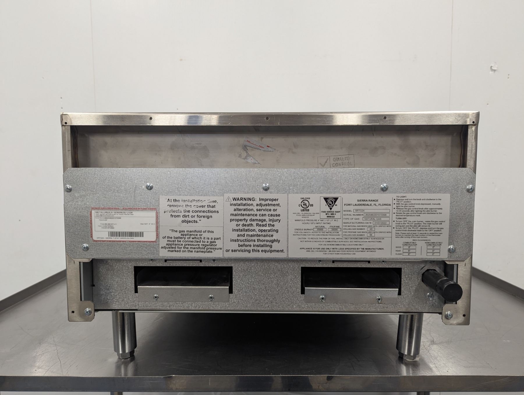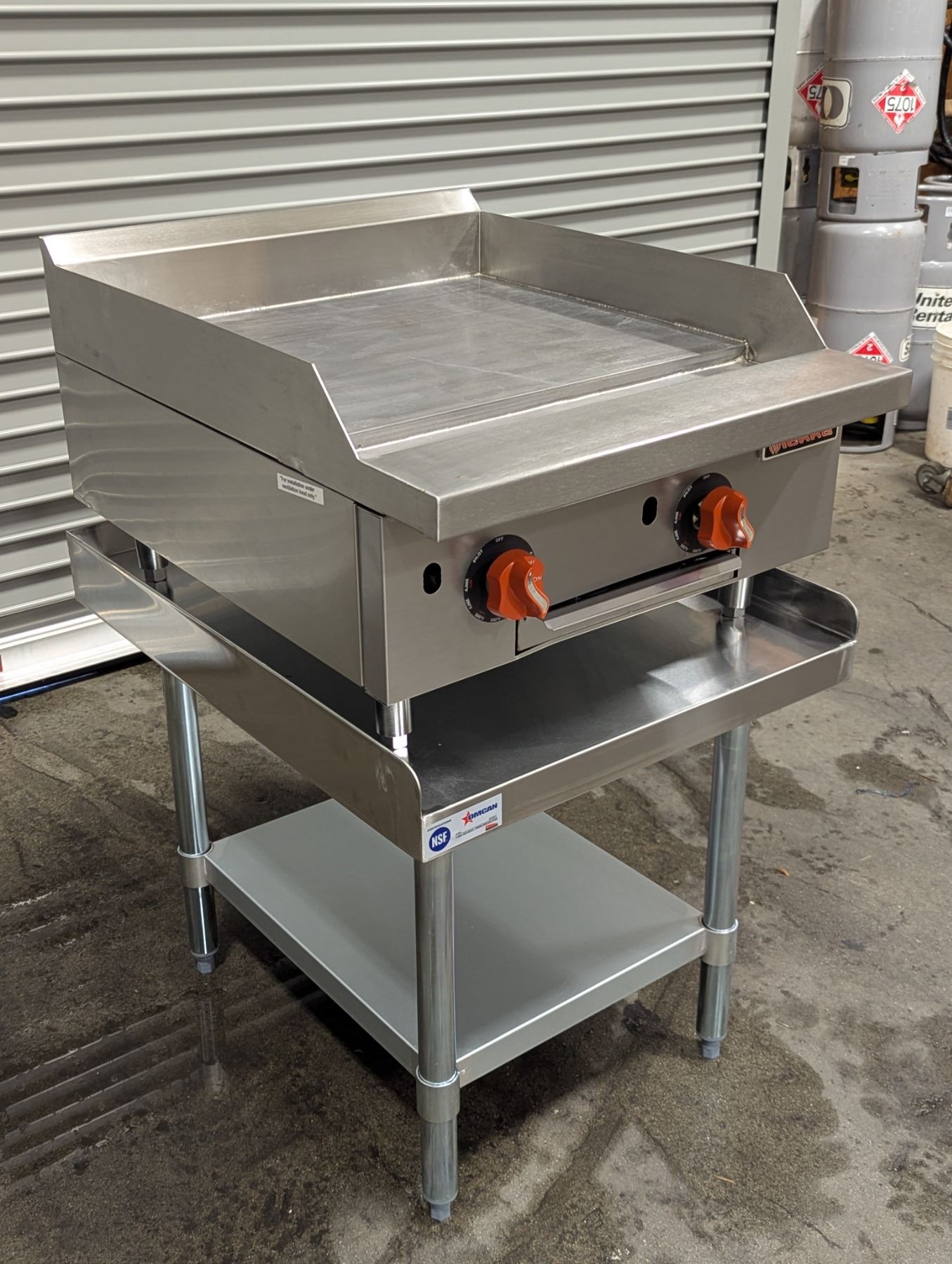 [New, Assembled,] Mfg July 2022, Serial# 2620482201070398, 1" Steel Plate, Natural Gas, Propane Conversion Kit Included, Equipment Stand: Omcan 22057