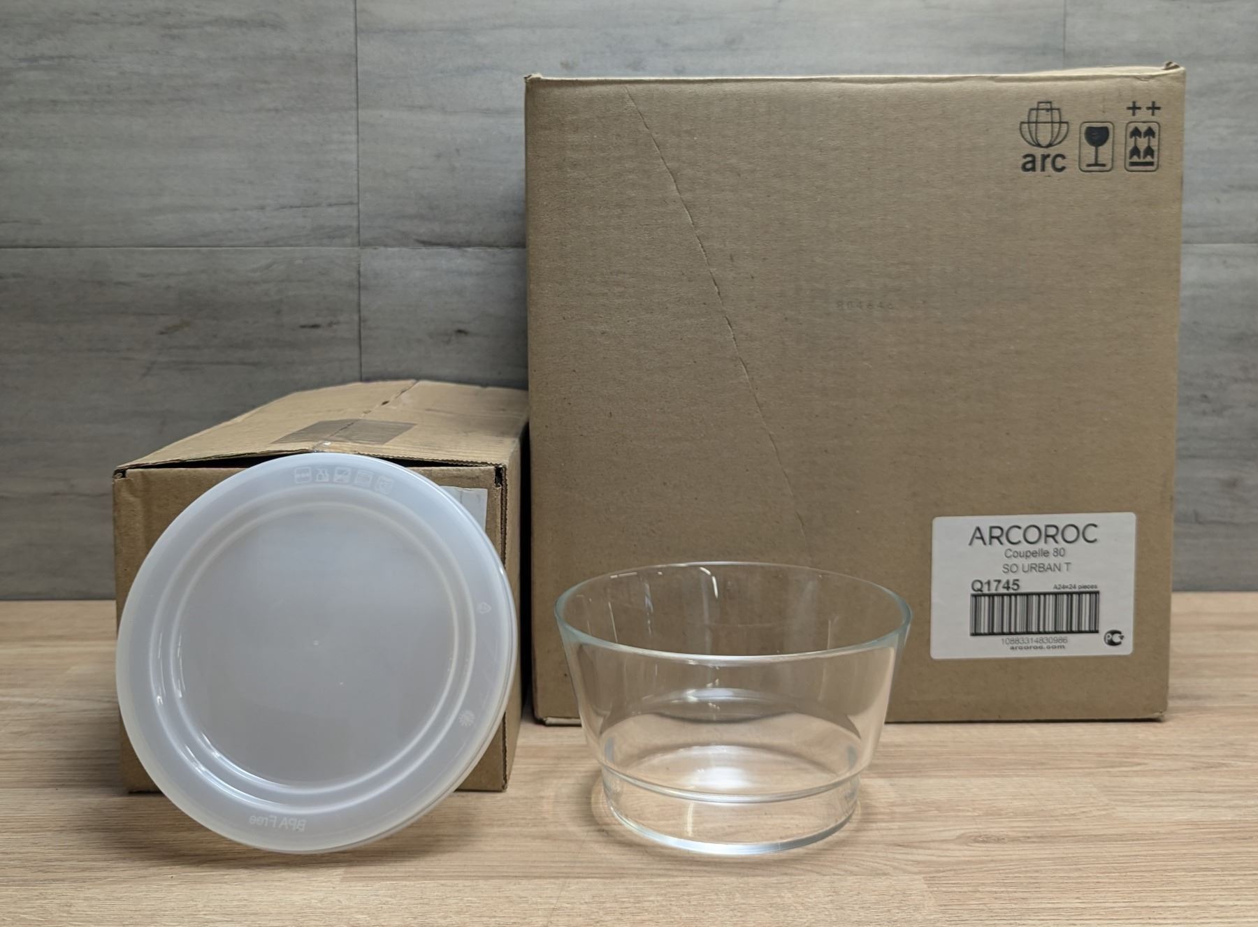 27oz Glass Bowls, Arcoroc "So Urban" Q1745 - Lot of 24 w/extra lids |Q1745&Q3006/CC3