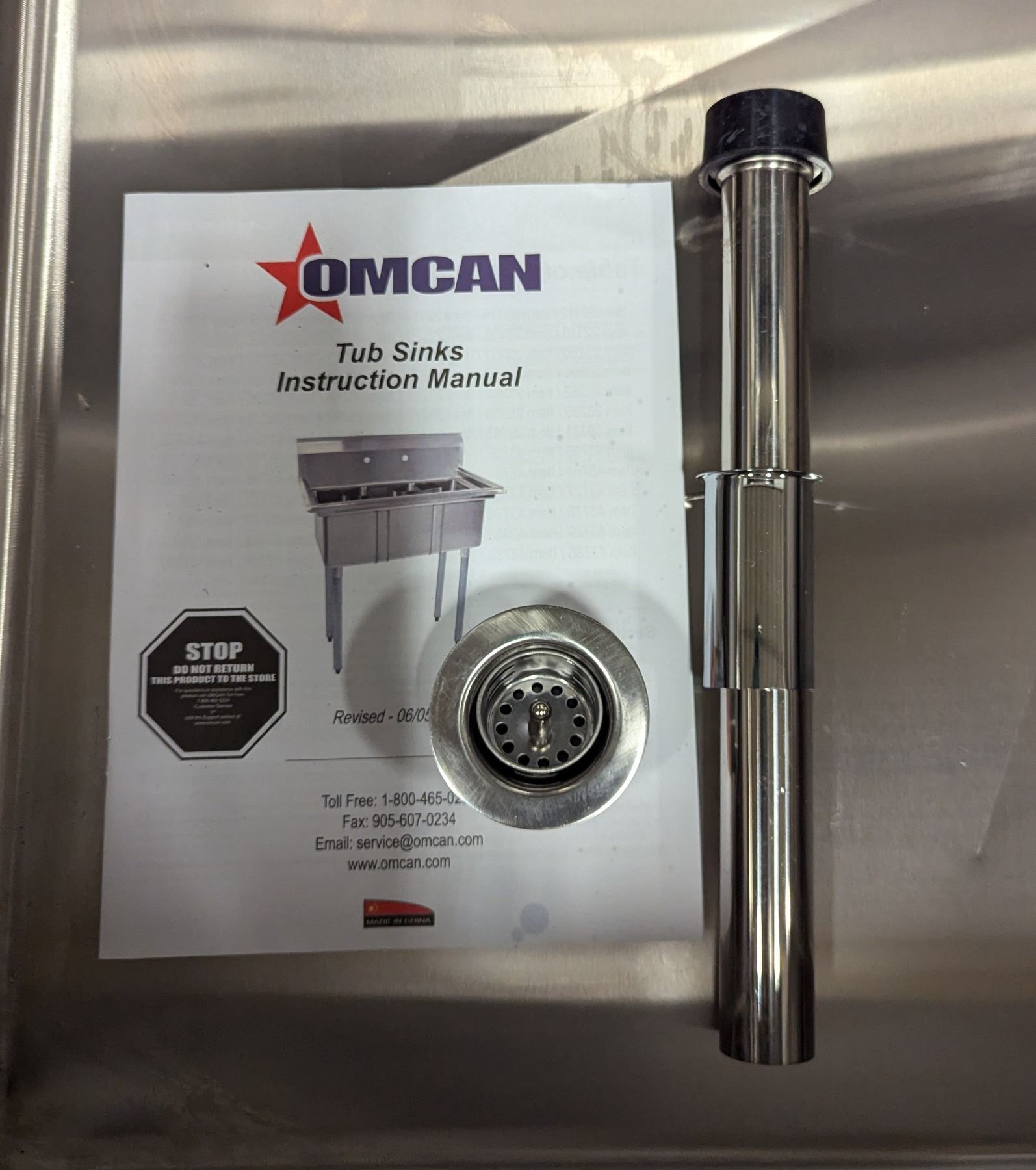 [New,] CSA Certified, Corner Drain, Includes Stopper, Basin Dimensions: 24" x 24" x 14", 44" Height with Backsplash