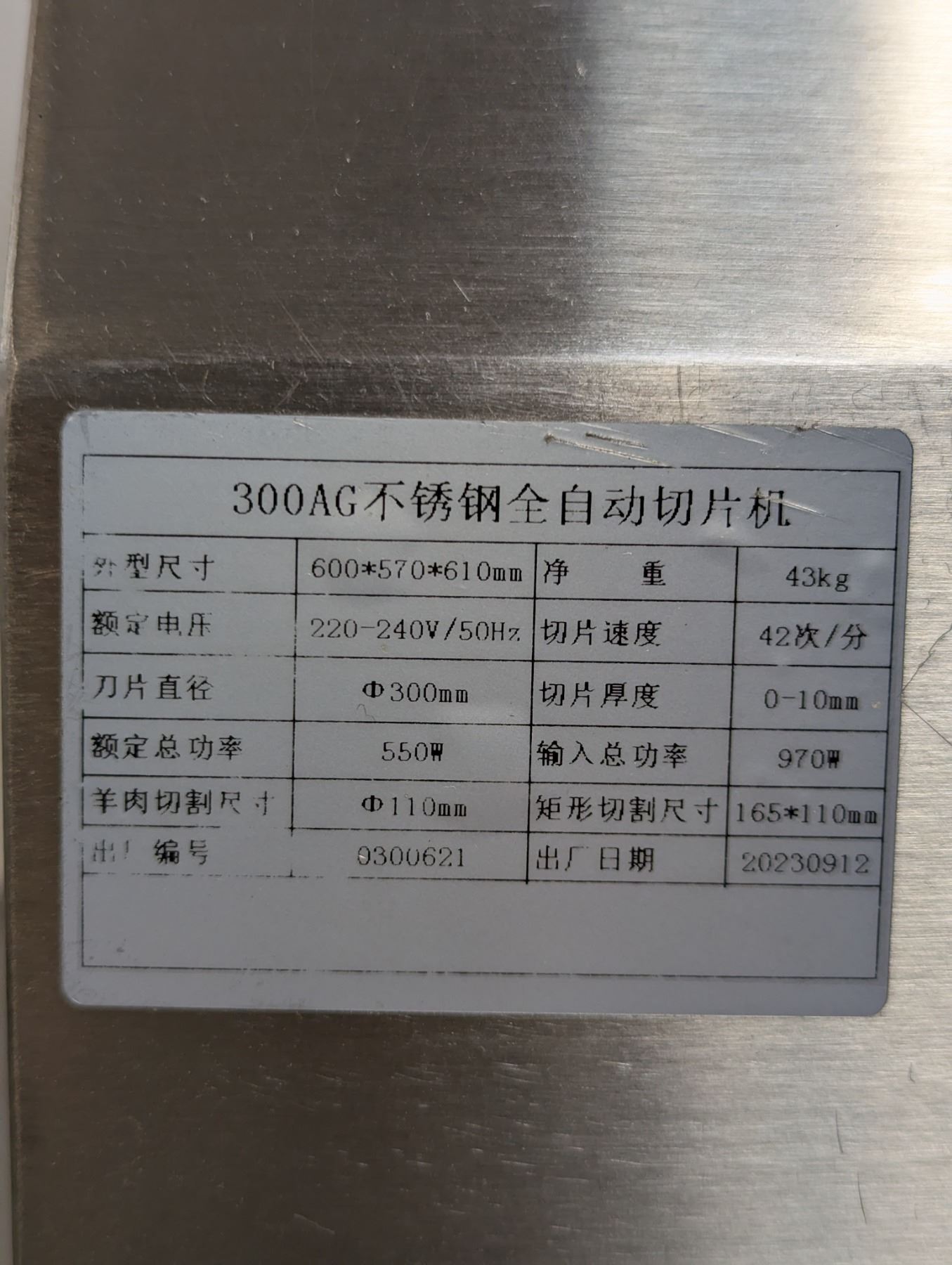 [Used, Tested/Working, Sliding Plate NOT moving Smoothly,] Serial# 0300621, 220-240V/50Hz, Blade 300mm Dia