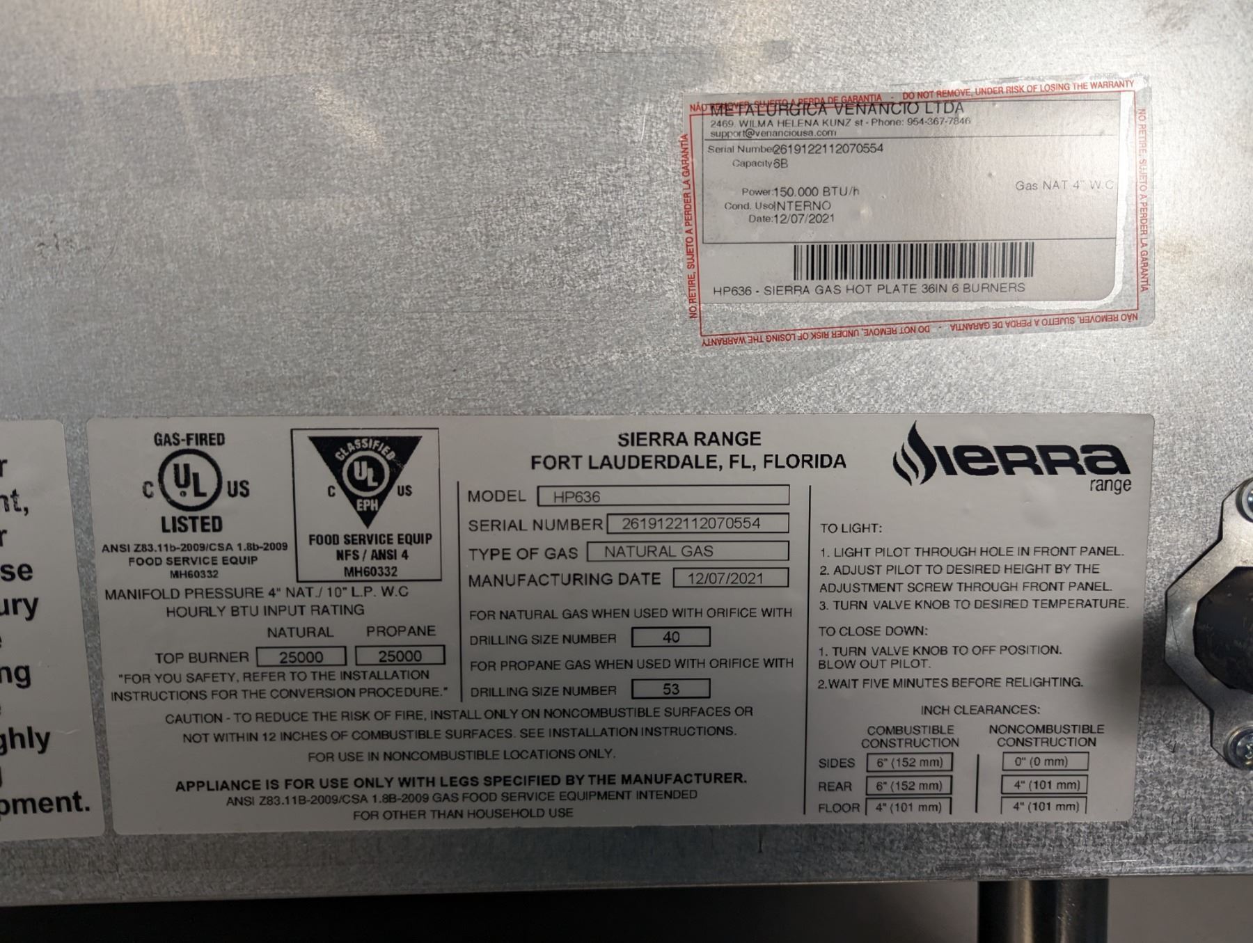 36" Six Burner Hot Plate with Equipment Stand, Sierra SRHP-6-36