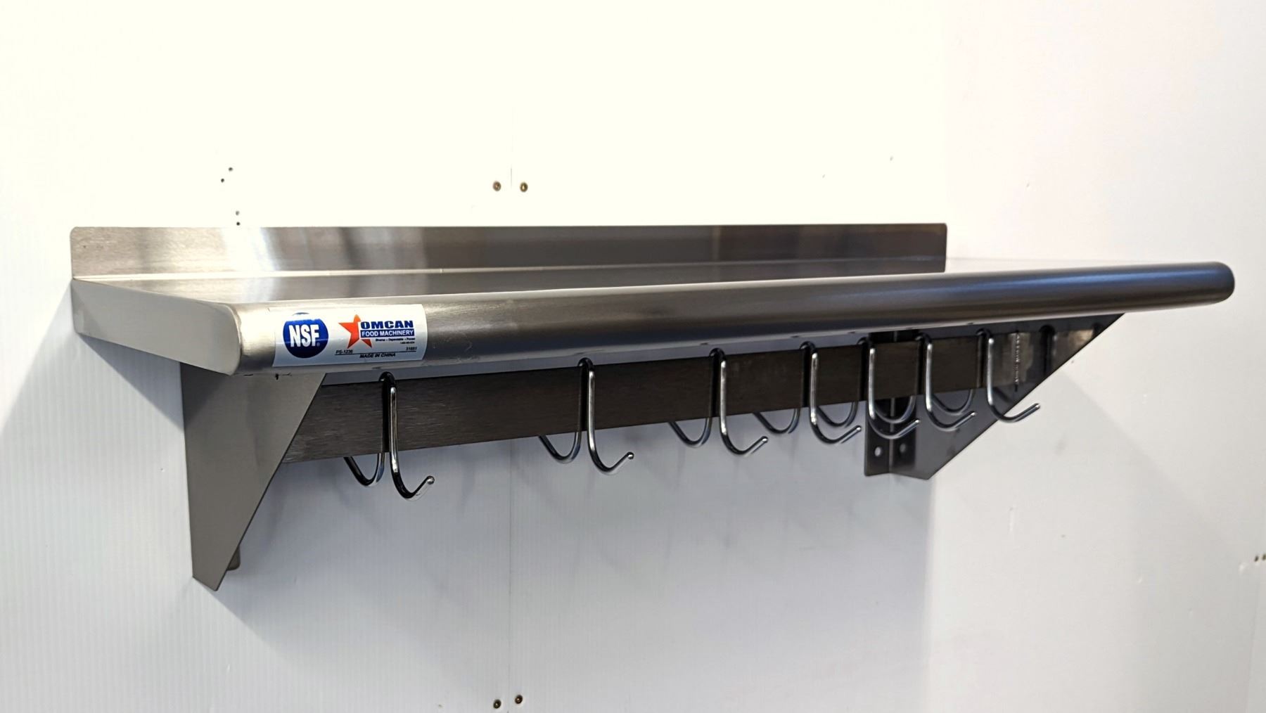 36" x 12" Stainless Pot Rack with Shelf, Omcan 31851 | MR6-3