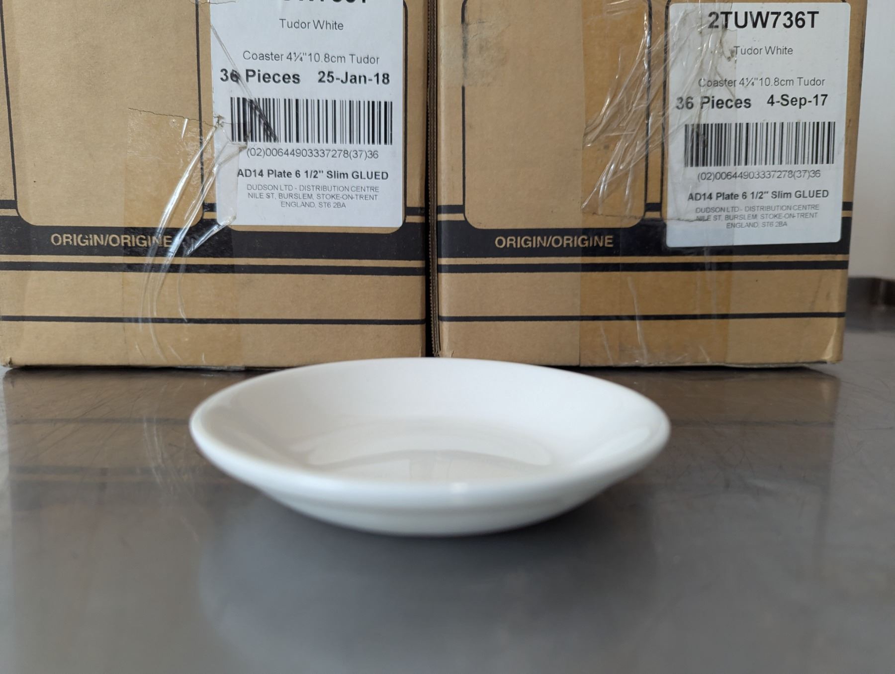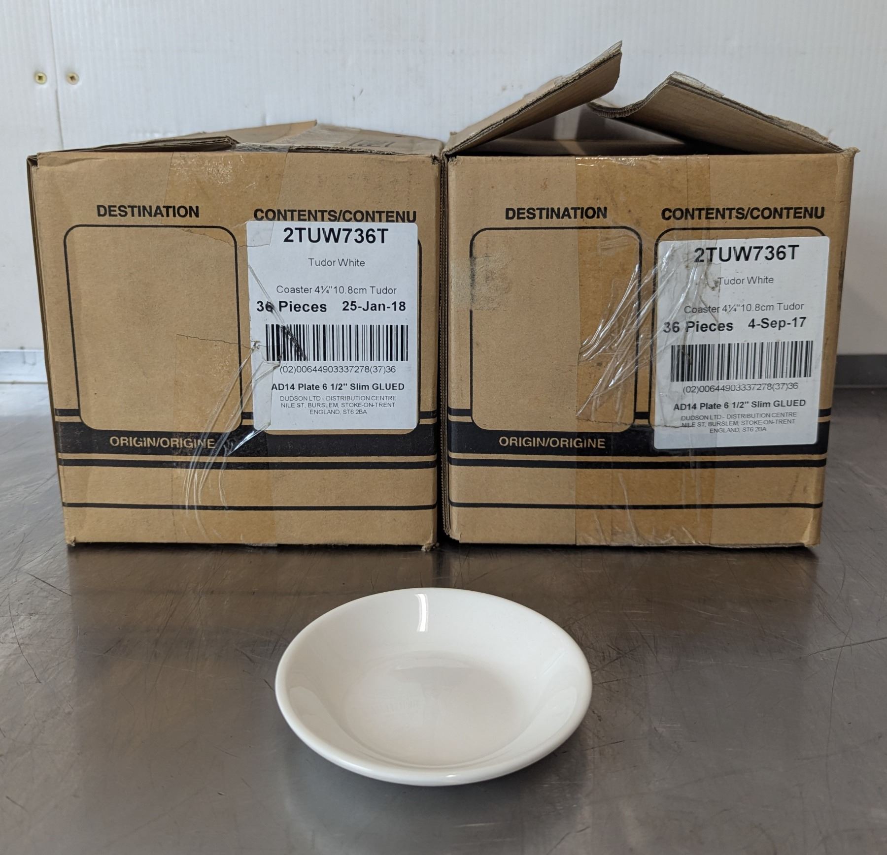 4-1/4" Tudor White Butter Dishes/Coasters, Dudson 2TUW736T - Lot of 72 (2 Cases)