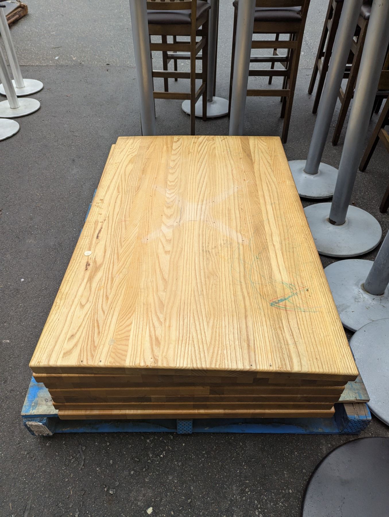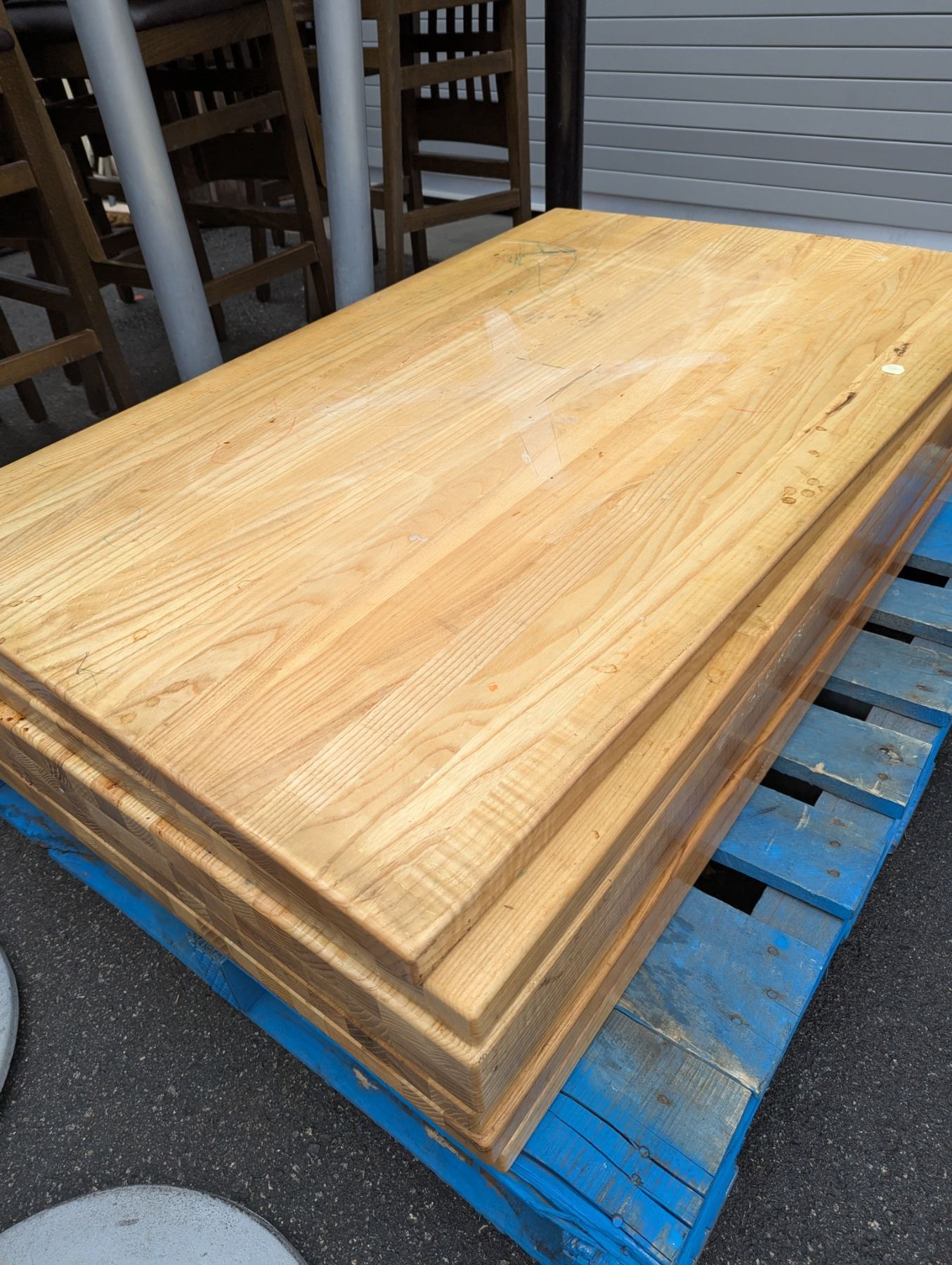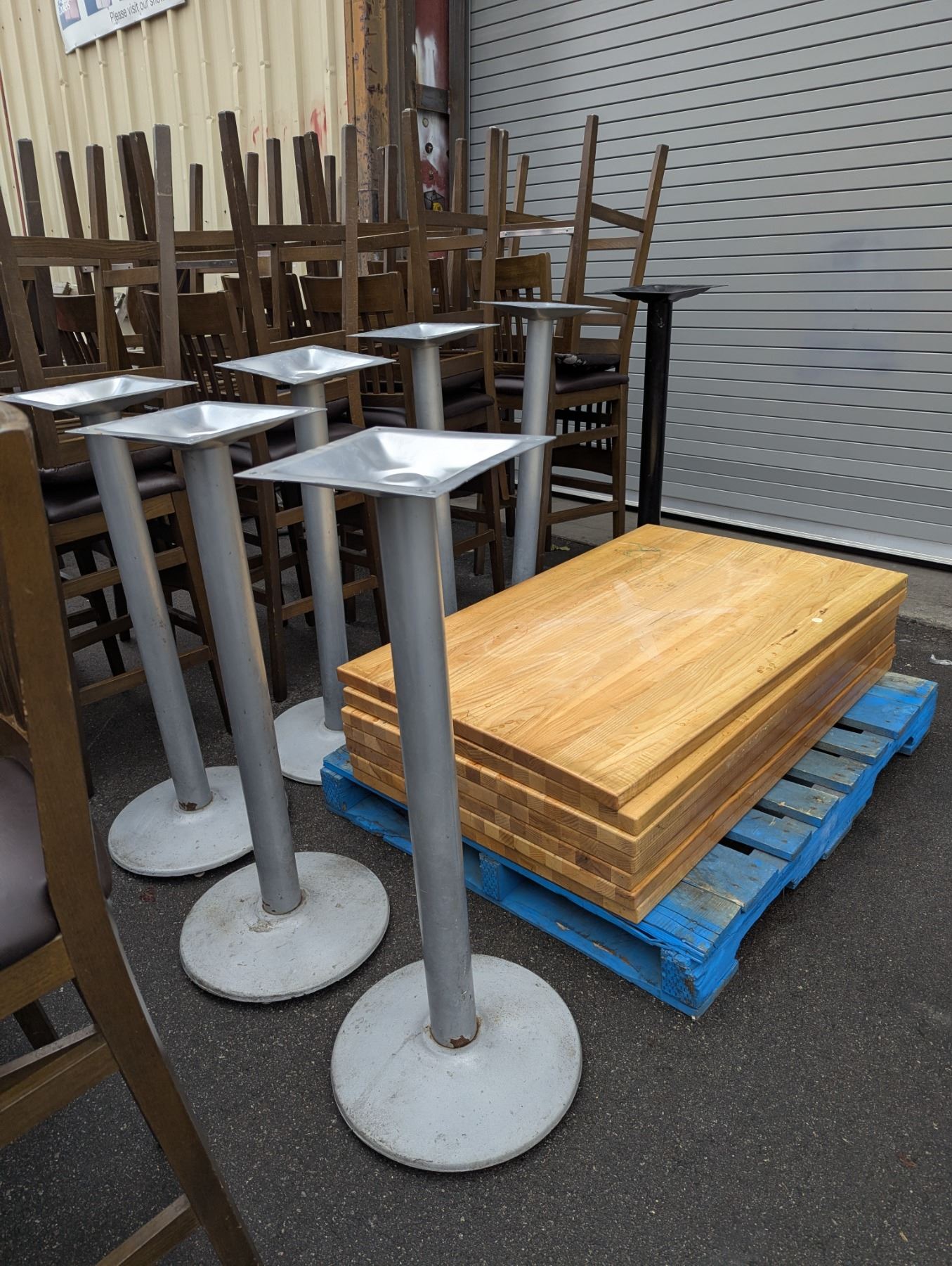 [Used, Disassembled,] Table (8pcs): 48" x 30" x 43", Chair (32pcs): Floor to seat 29", As we are unable to palletize the furniture, please arrange for a mover or collect the items by yourself. Kindly let us know if you require any further information regarding the pickup. Please note that pickups are by appointment only.