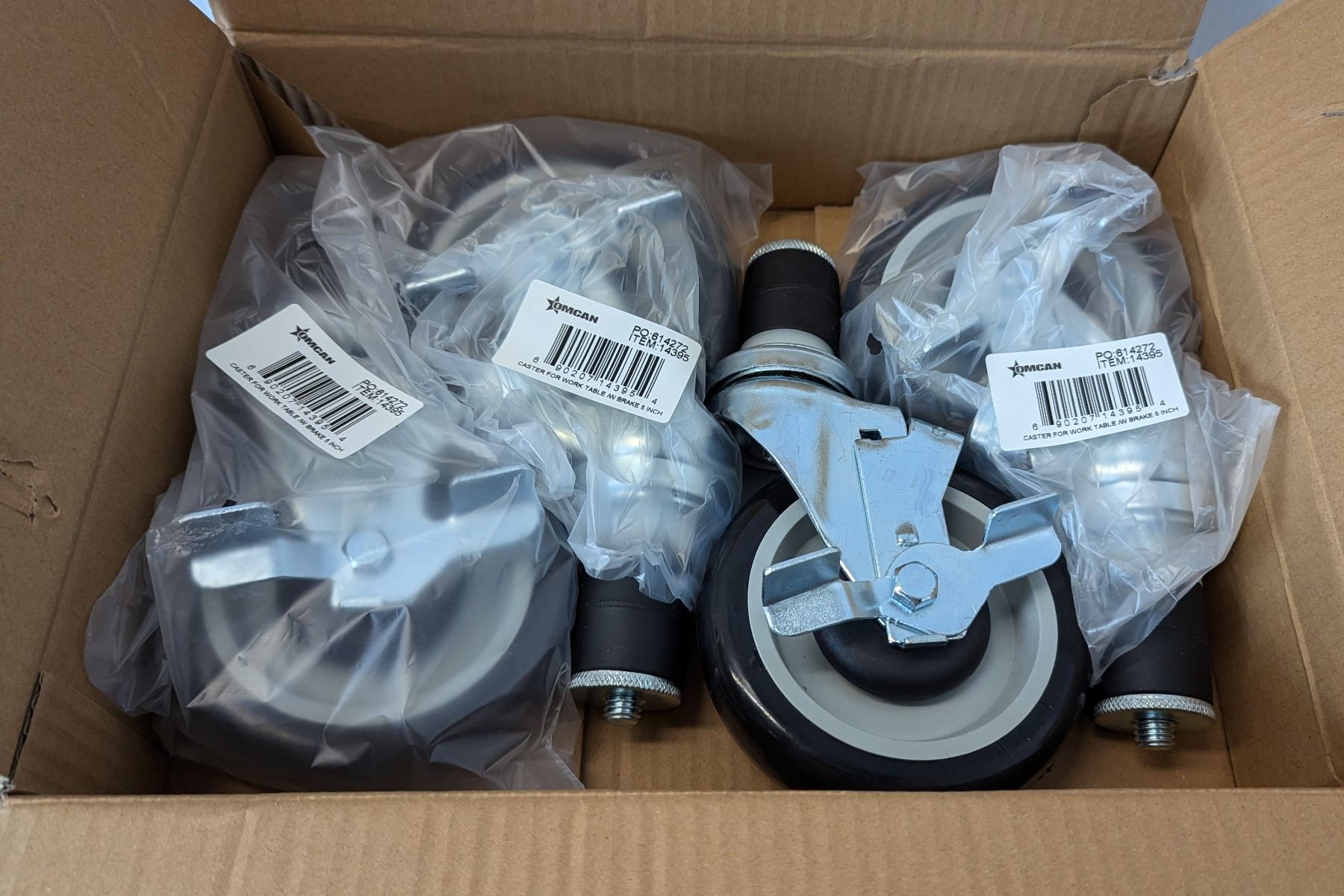 5" Industrial Caster for Worktables with Brake, Omcan 14395 - Lot of 4 | L6CR4