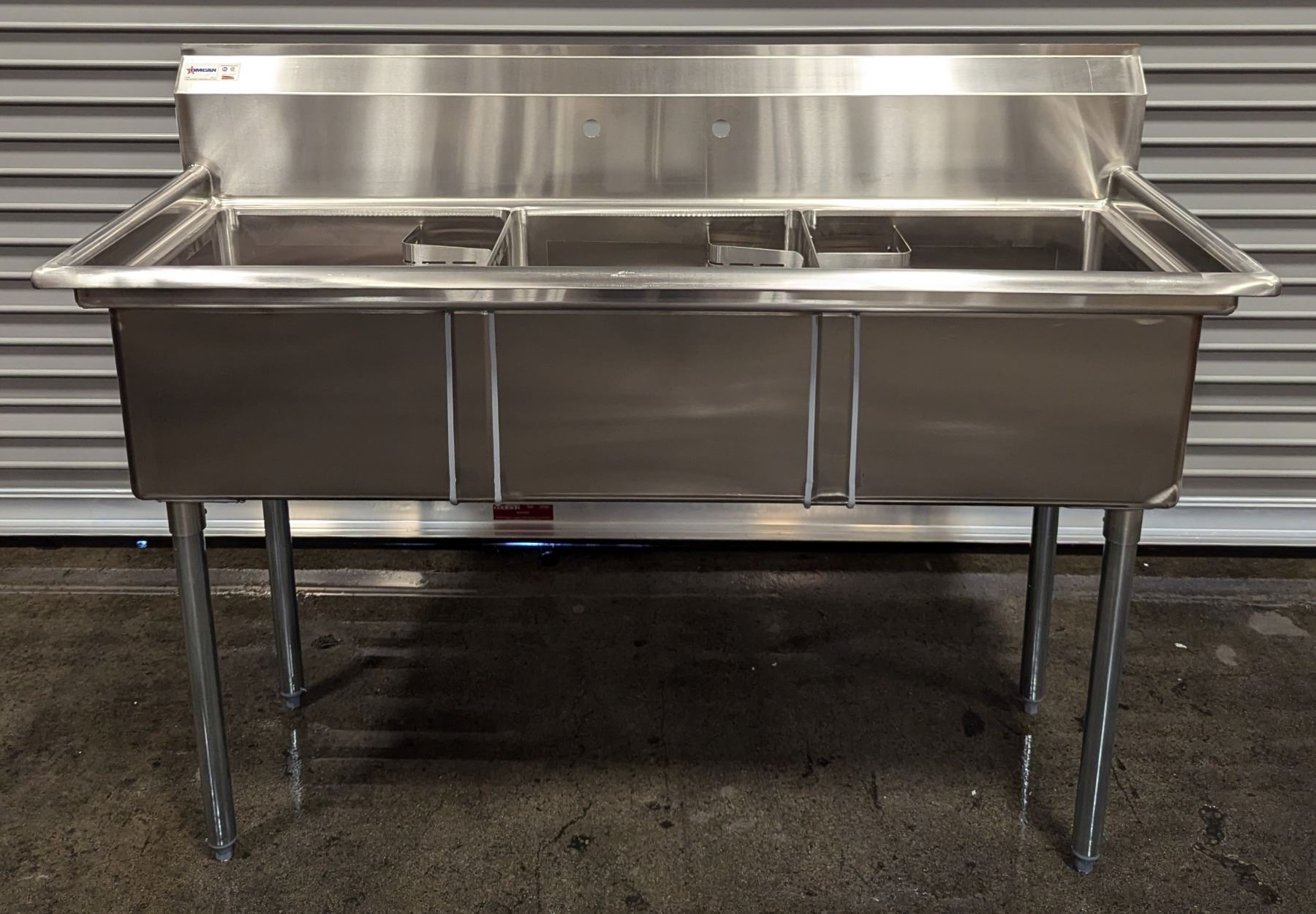 59" x 24" Three Tub Sink, Omcan 22114