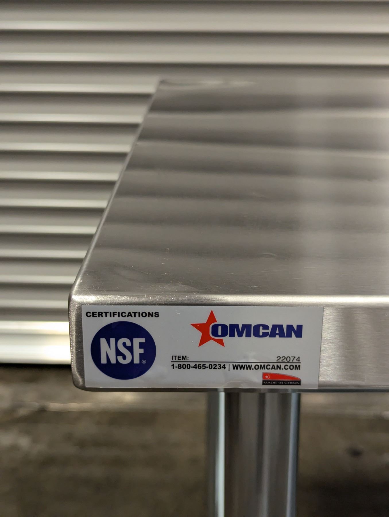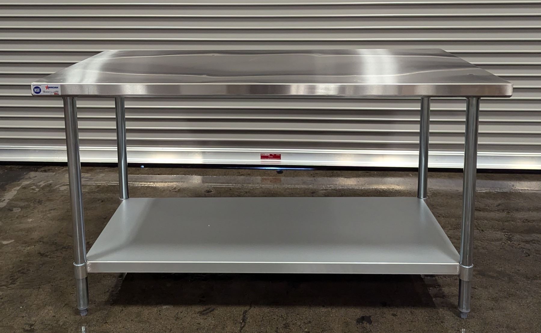 [New in Box,] 18 Gauge 430 Stainless Steel, Top Load Capacity: 679lbs, Undershelf Capacity: 396.8lbs, Fully Adjustable Undershelf, Plastic Bullet Feet (34" Height Adjustable from 33.5" to 34.5",) Galvanized Legs