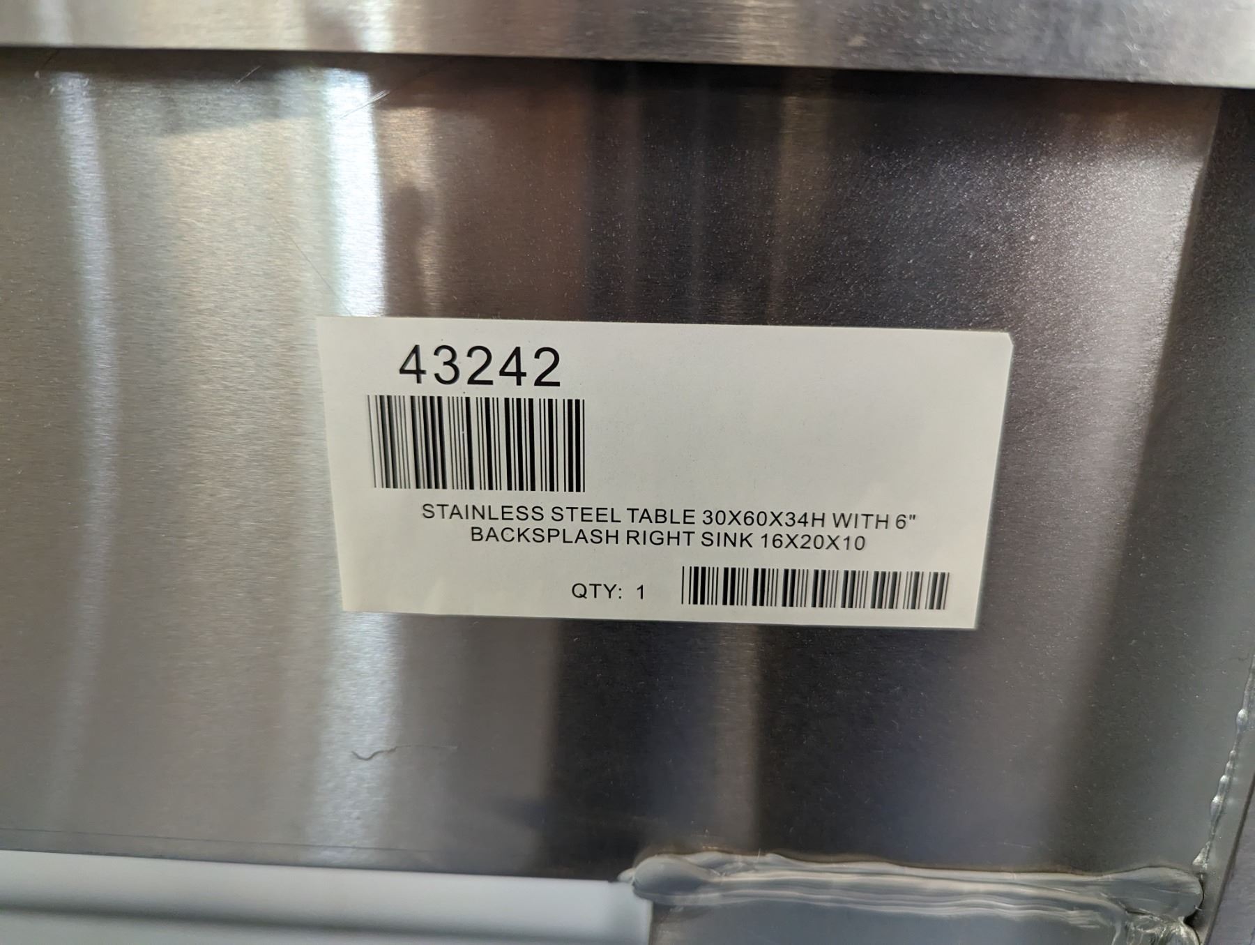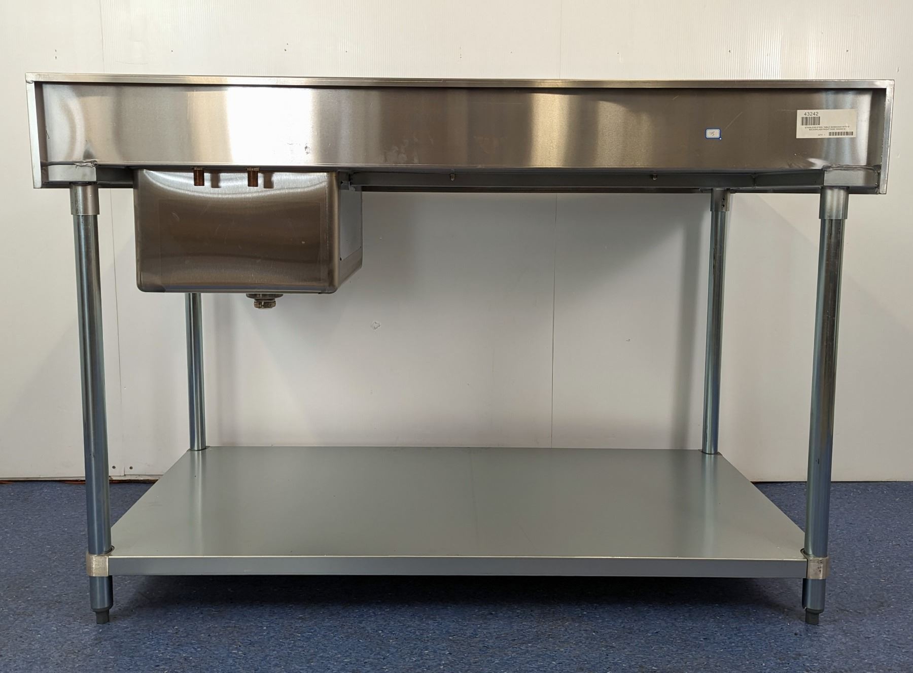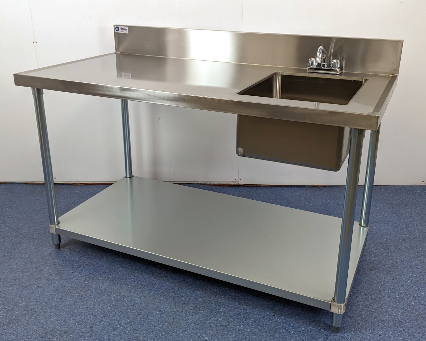 60" x 30" Stainless Table with Right Sink, 6" Backsplash, Omcan 43242