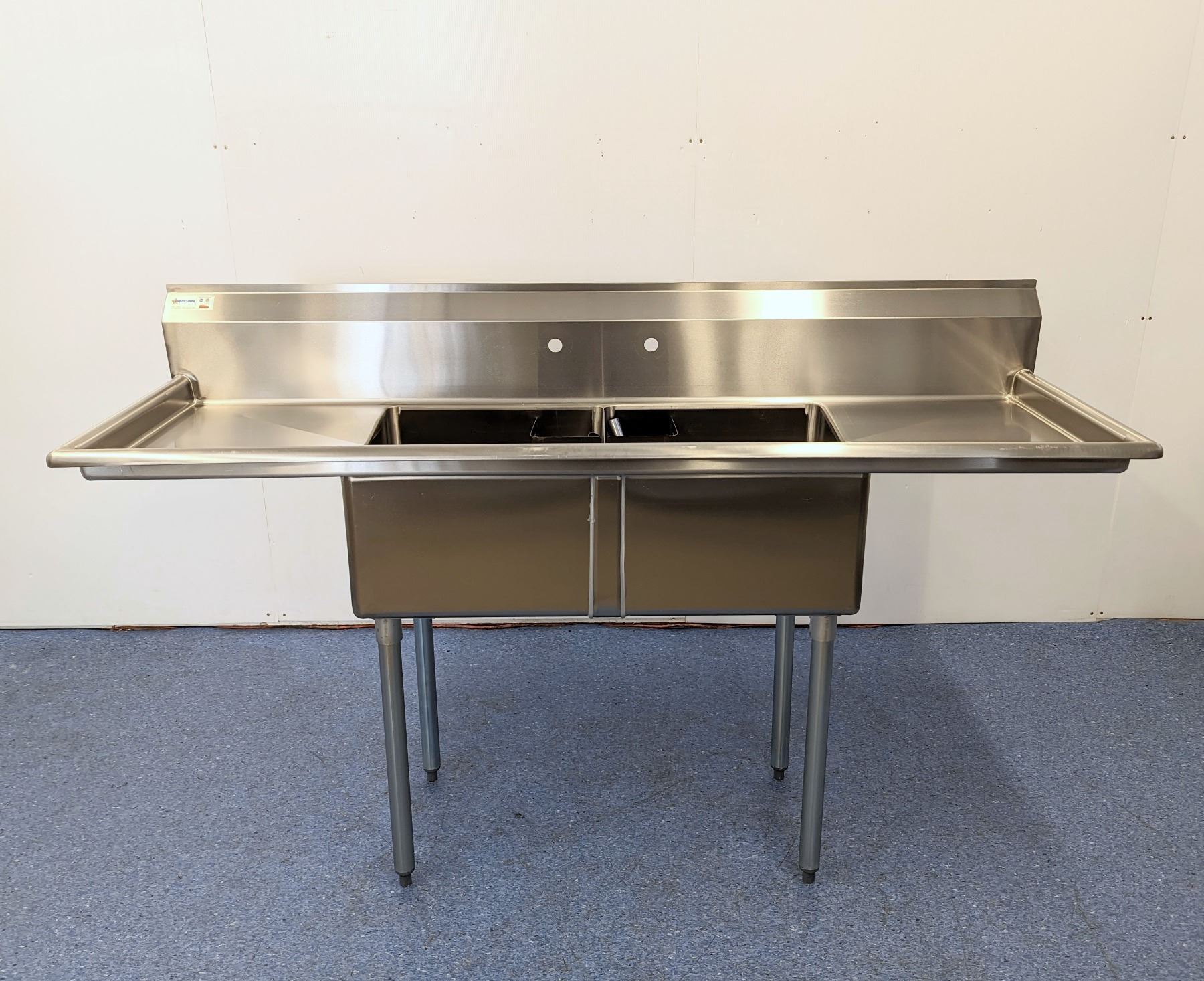 72" x 24" Two Tub Two Drain Boards Sink, Omcan 25252