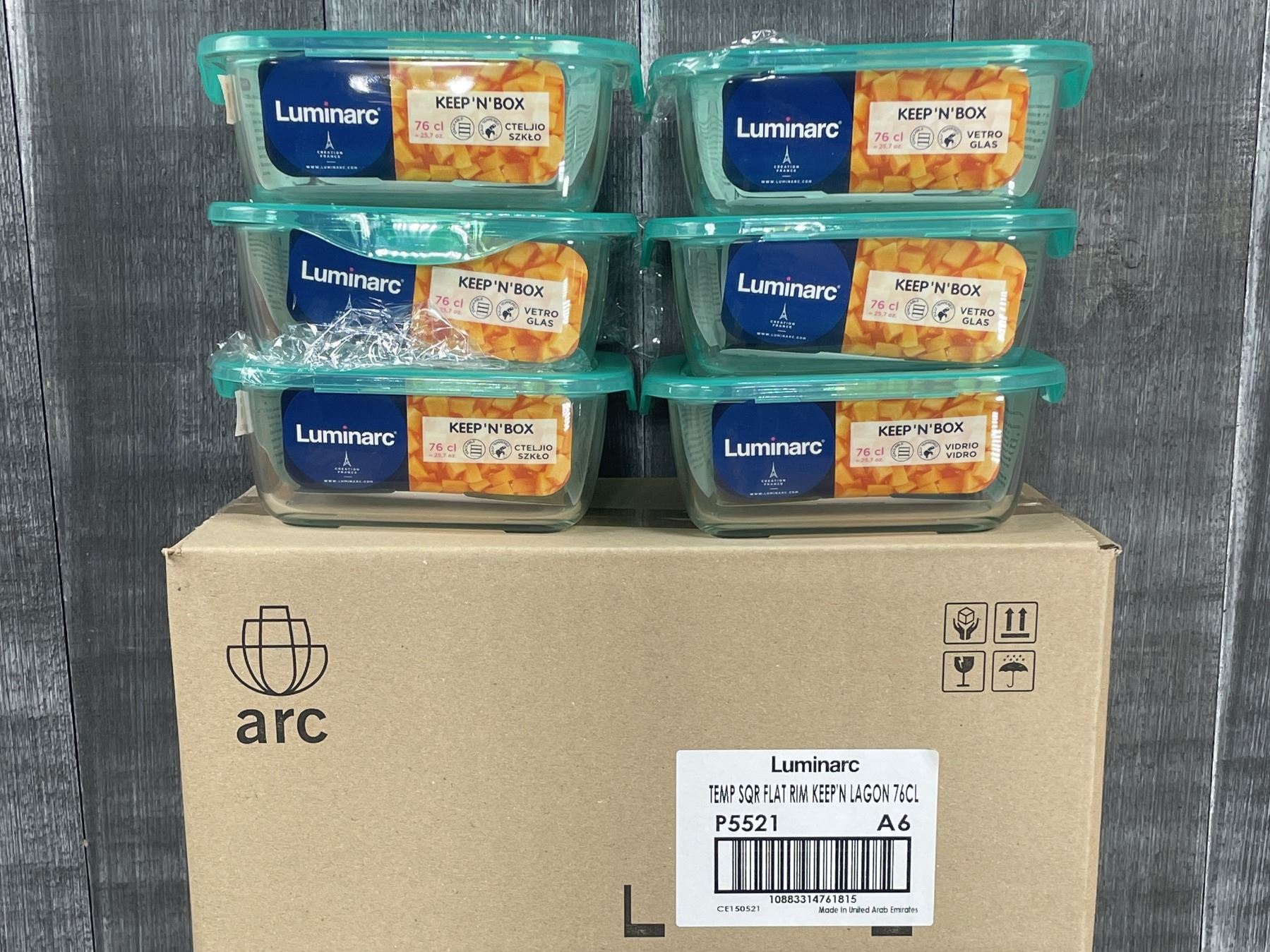 760ml Glass Square Keep N Boxes, Arcoroc P5521 - Lot of 12 (2 cases) | R9-Corner