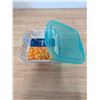 [New,] 6" W x6" D x 2.75" H, tempered glass body, 25.7oz, shock resistant, lids included, microwave/freezer/dishwasher safe