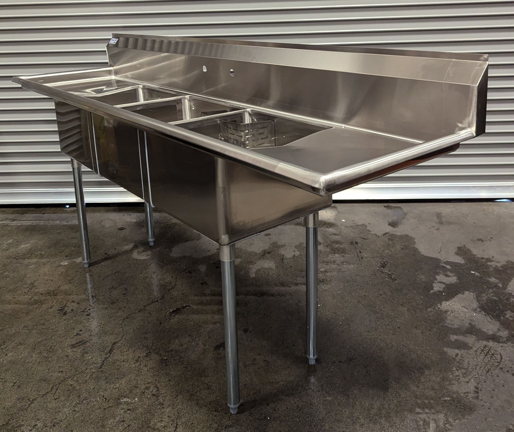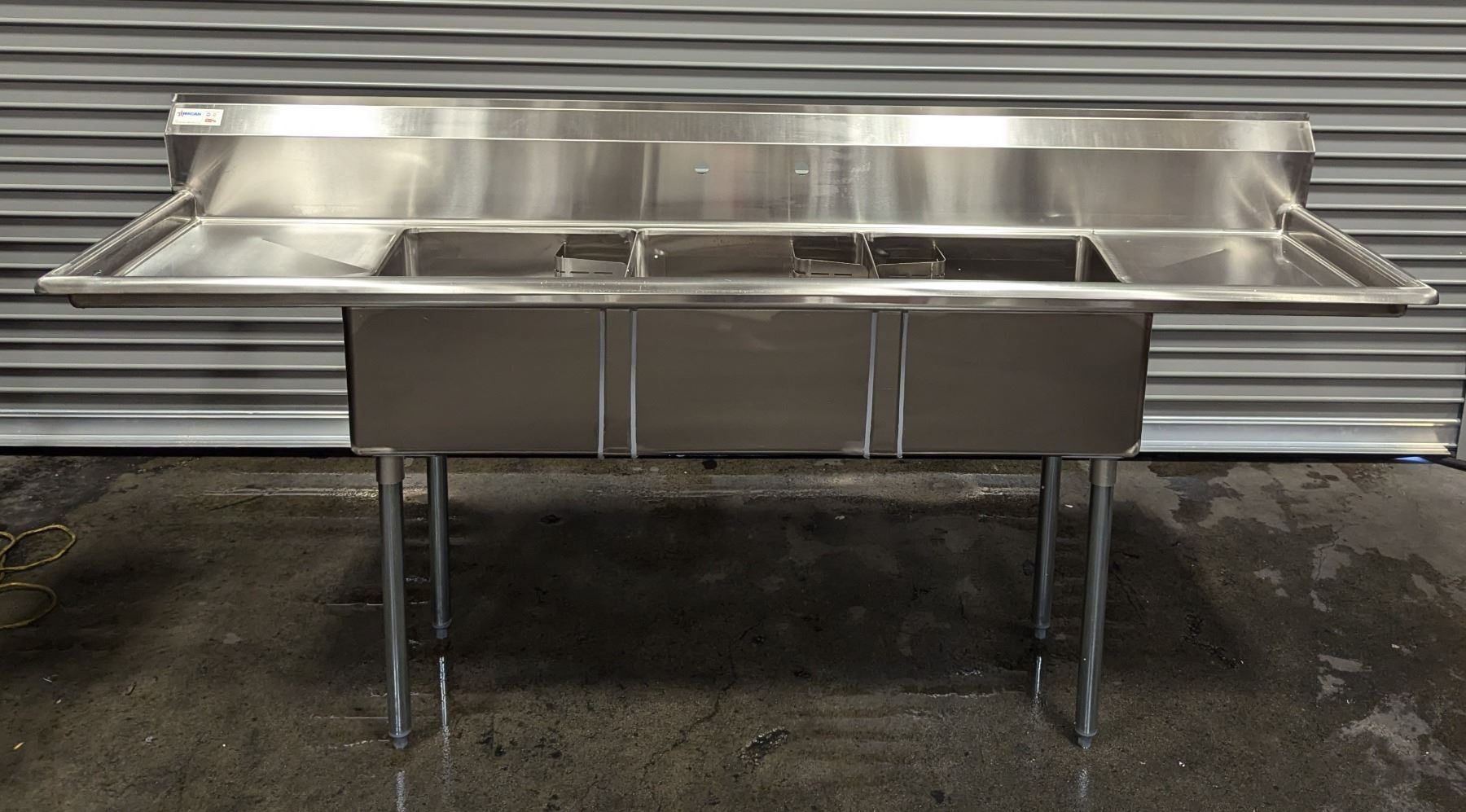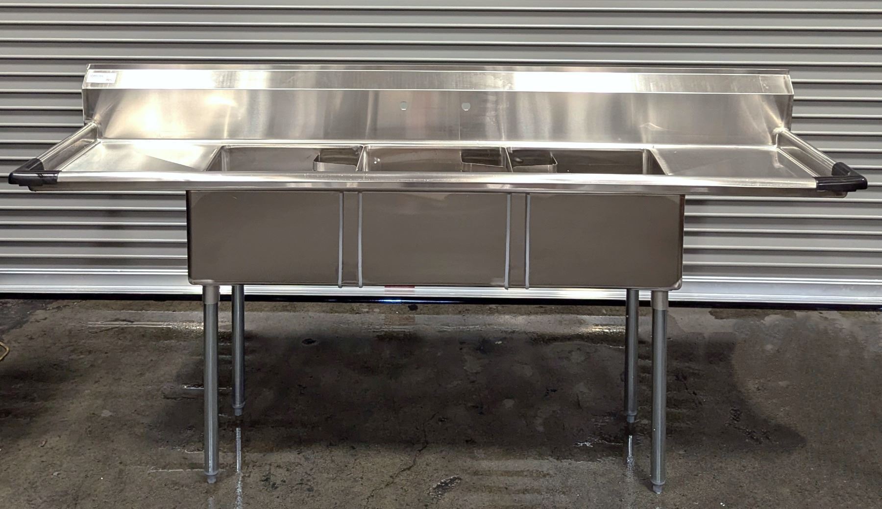 90" x 24" Three Tub Two Drain Boards Sink, Omcan 22117