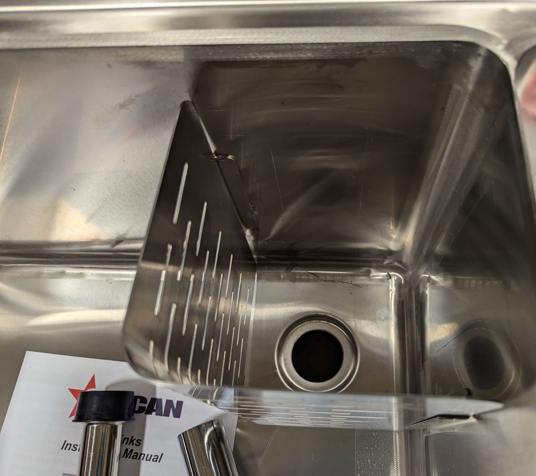 [New,] CSA Certified, Corner Drains, Includes Stoppers, Basin Dimensions: 18" x 18" x 11", 44" Height with Backsplash