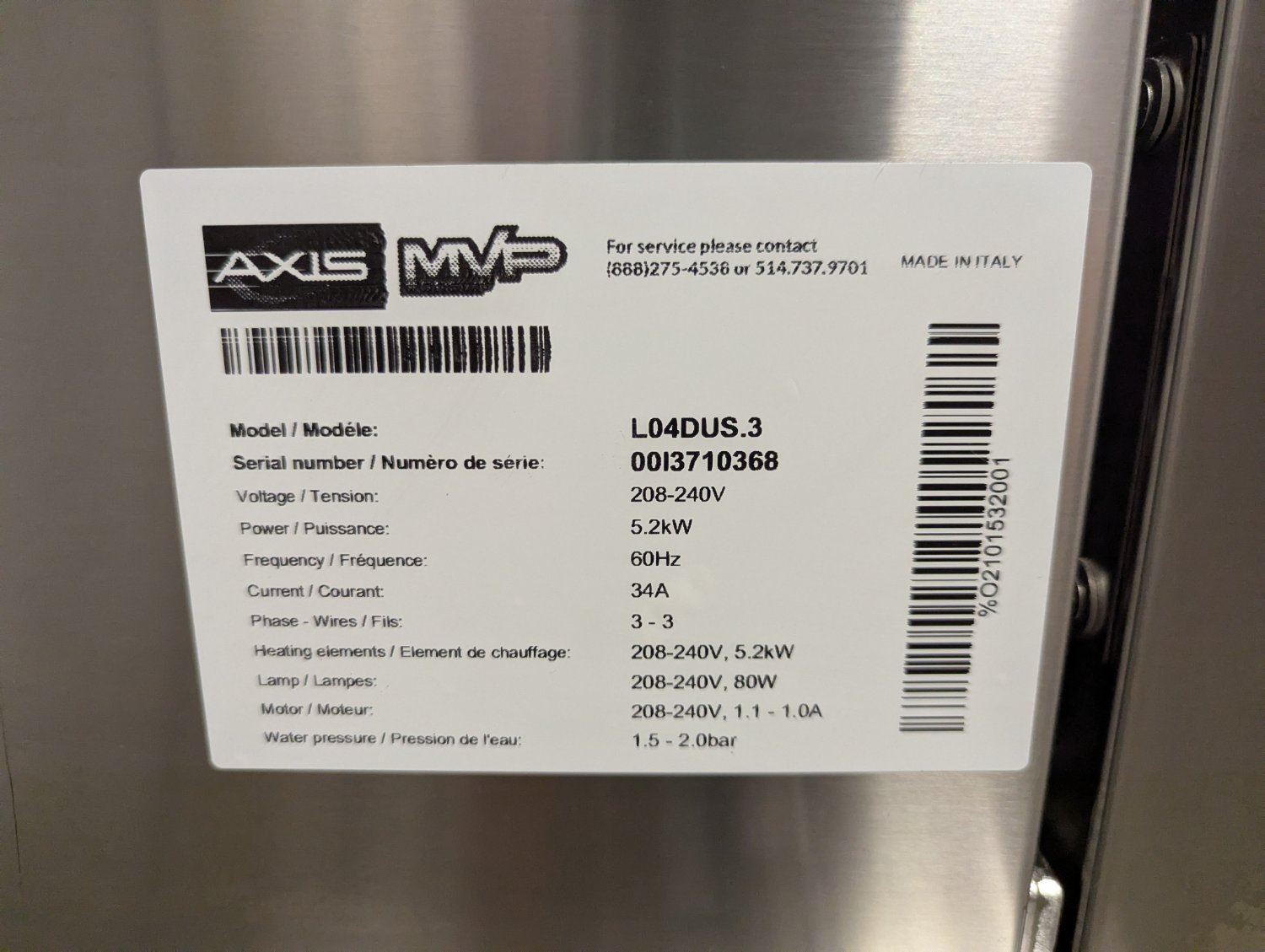 [Oven/New, Stand/Used, Dents,] Serial# 0013710368, 33-1/2" x 32" x 52-1/2"(W/Stand), 208-240V/60Hz/1Ph