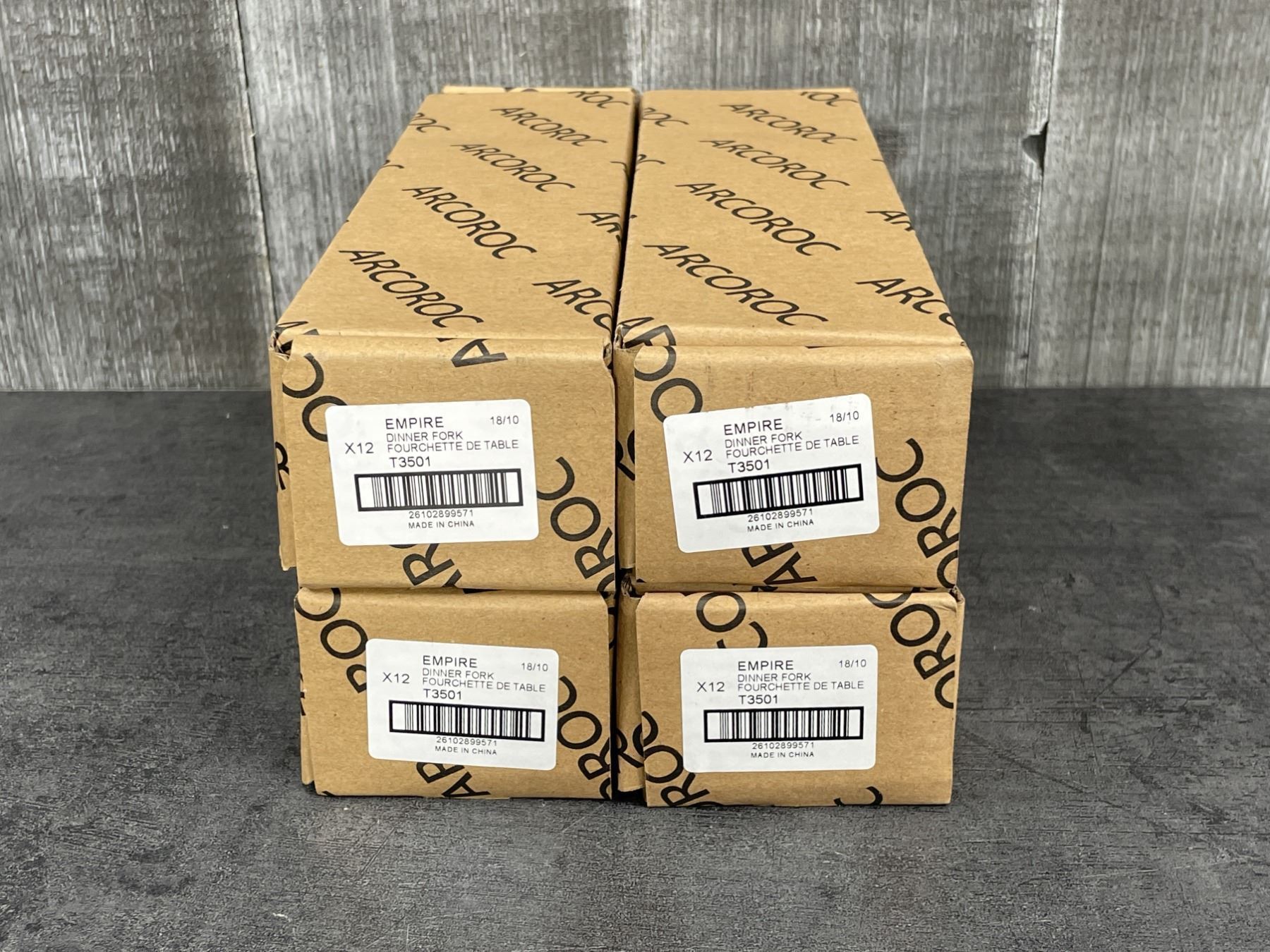 [New In Boxes,] 18/10 Stainless - $445 Retail Value! 12 Each (1 Box) of: Dinner Forks T3501, Dinner Spoons T3502, Dinner Knives T3504, Dessert Forks T3505, Dessert Spoons T3506, US Teaspoons T3528, Salad Forks T3529
