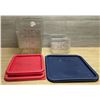 [Used,] Blue lid: 1pc (fits for 12/18/22qt), 2qt container x 2, 8qt container x 2, Red lid: 2pcs (fits for 8qt)