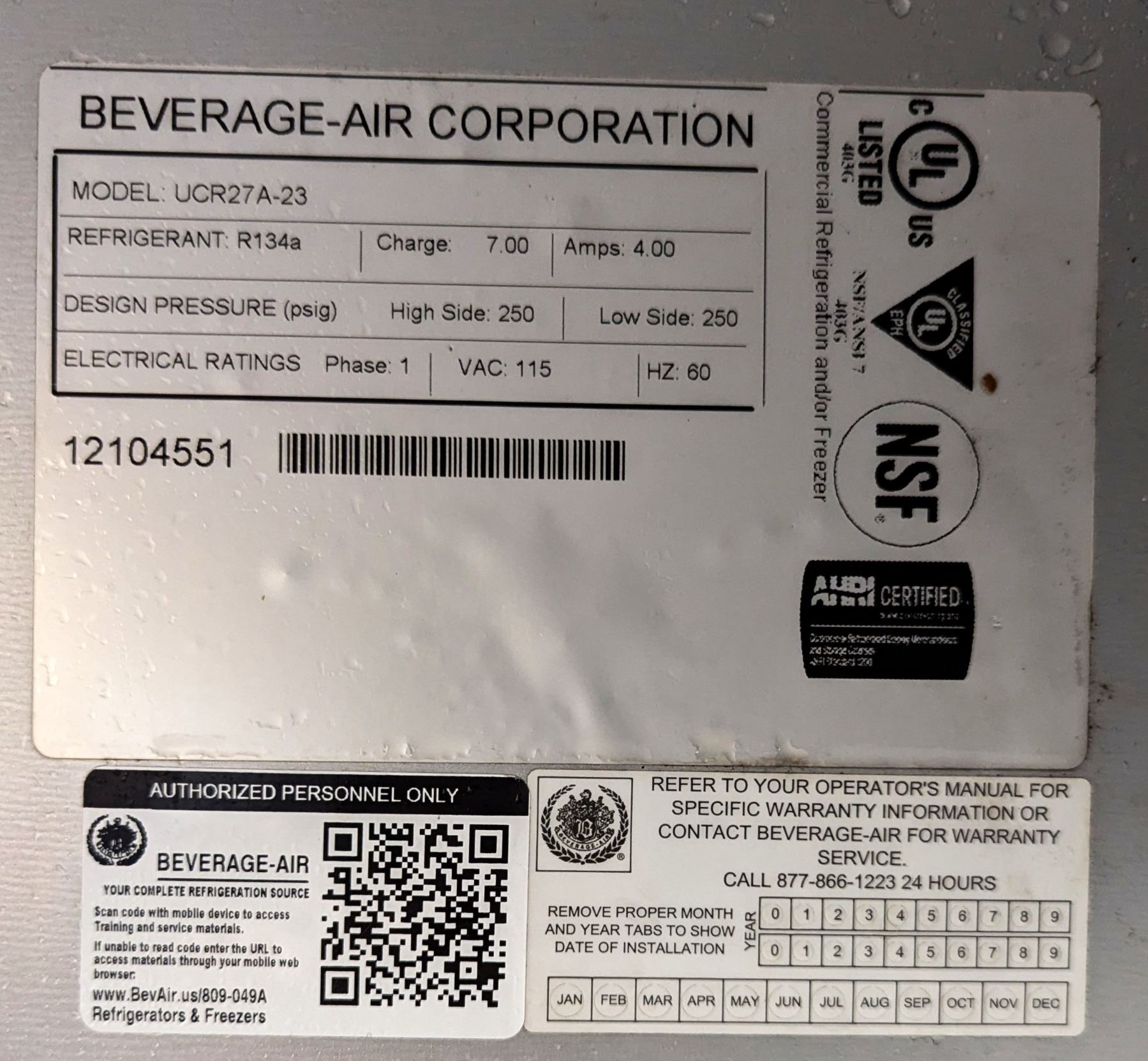 [Used, Tested/Working,,] Serial# 12104551, 27" x 29-1/4" x 34-1/2", 115V/60Hz/1Ph