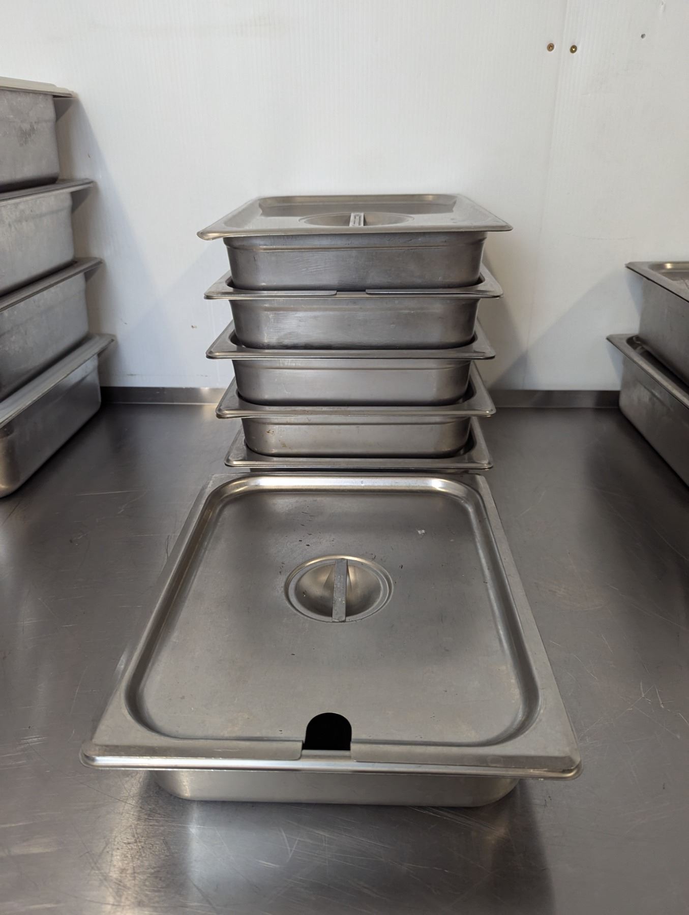 Browne 1/2 Size 2-1/2 & 4" Deep Stainless Inserts W/Lids - Set of 13|FtF/Aset2