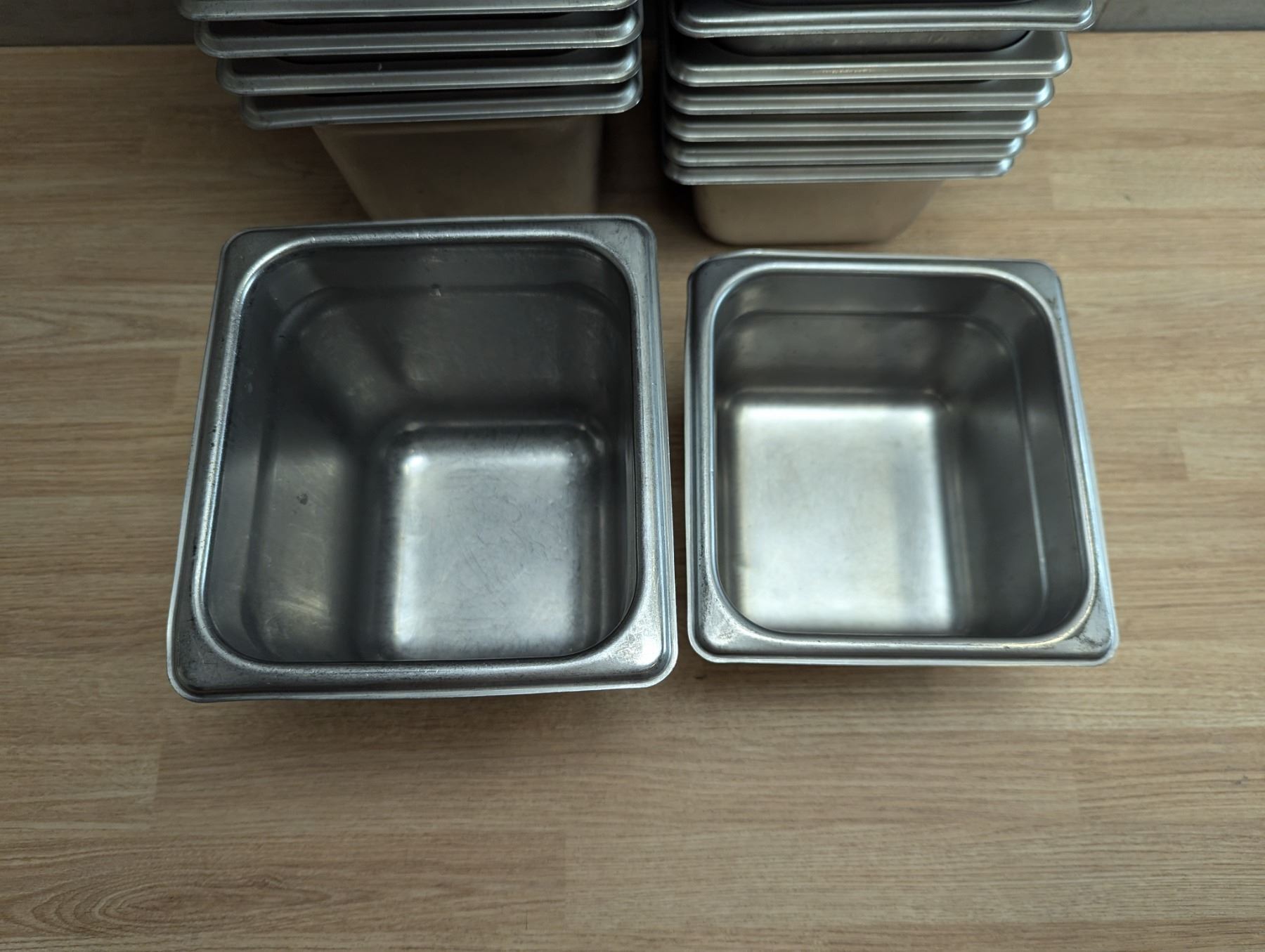 [Used,] 4" Deep x 10, 6" Deep x 16, Comes with 6 lids