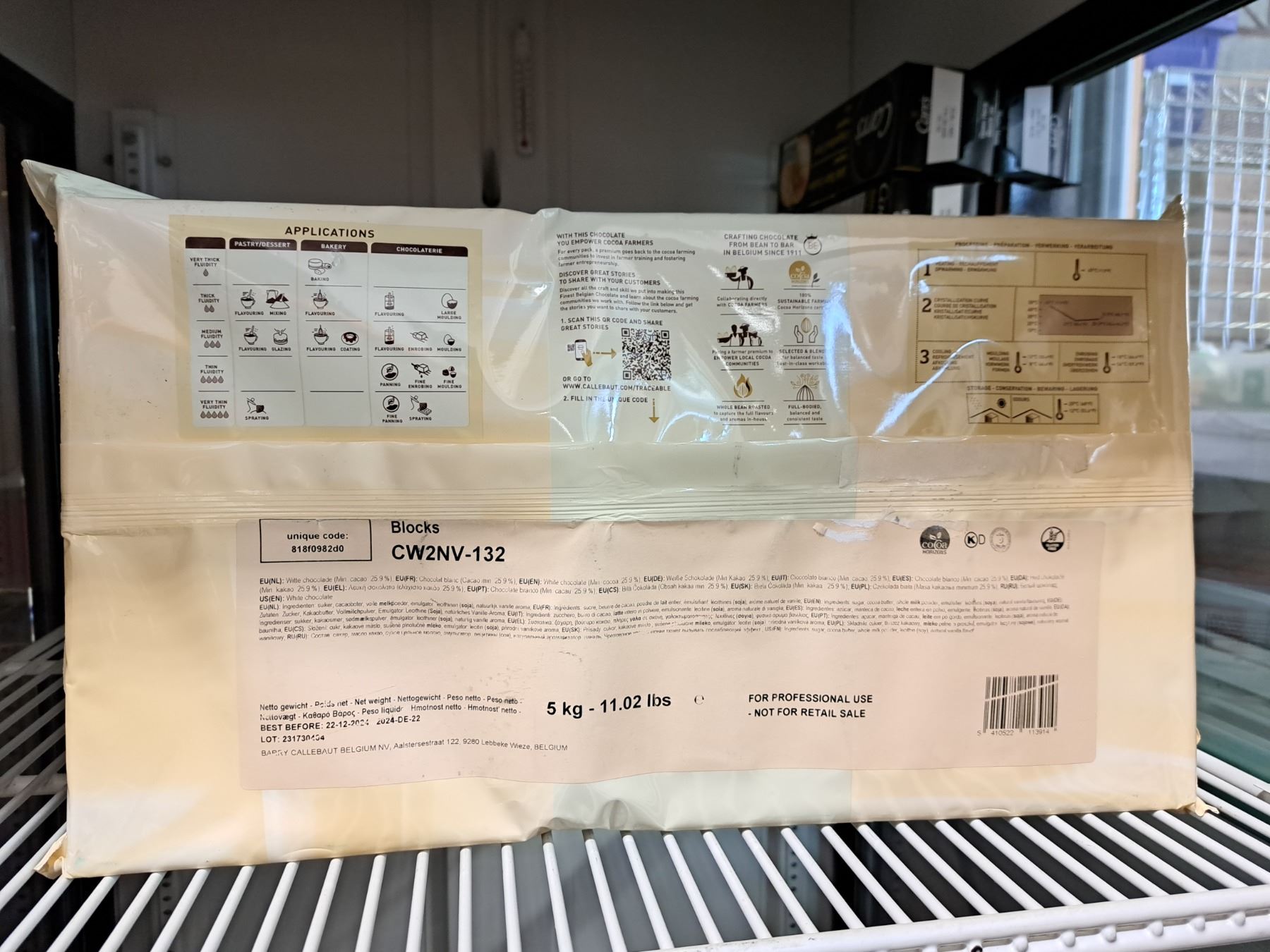 Callebaut Finest Belgian Chocolate CW2 White Block 5kg - Lot of 2