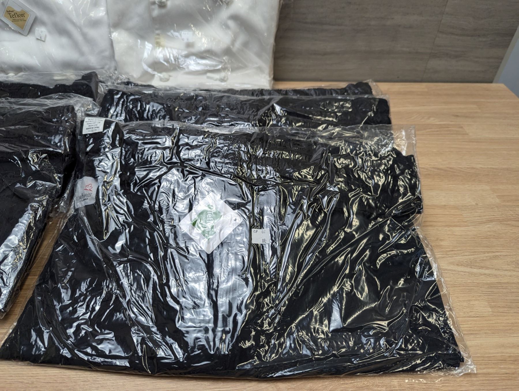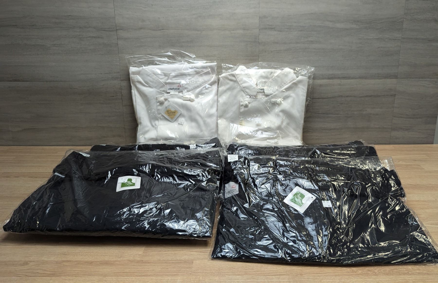 Chefwear White Chef Jackets & Black Pants, Size XL - Lot of 10pcs, L7L