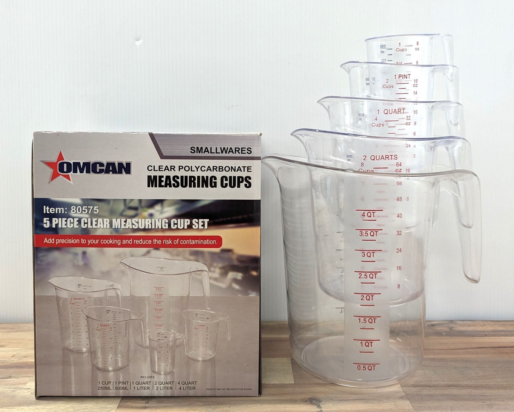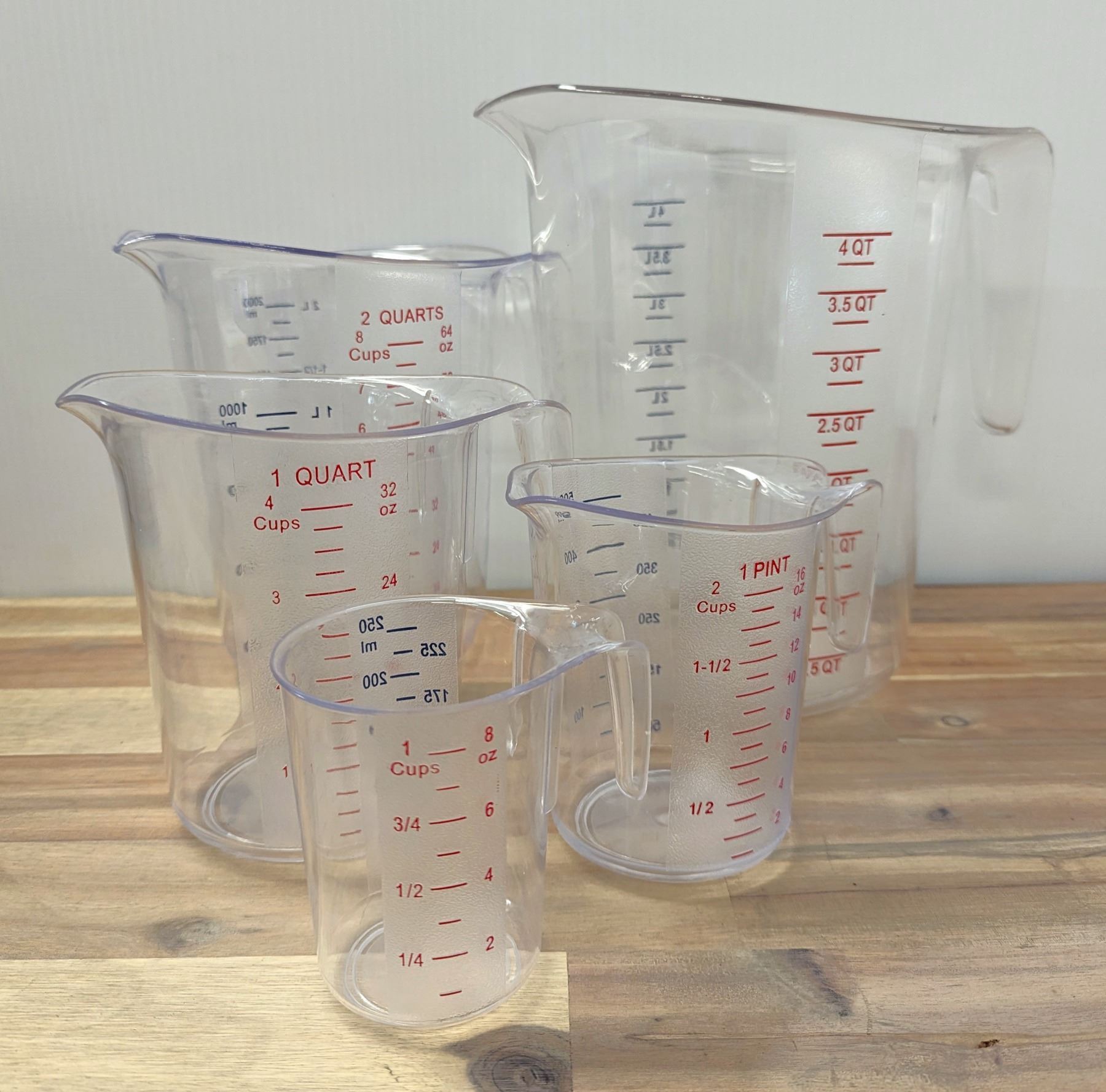 Clear Polycarbonate Measuring Cup Set, Omcan 80575 - Lot of 5pcs