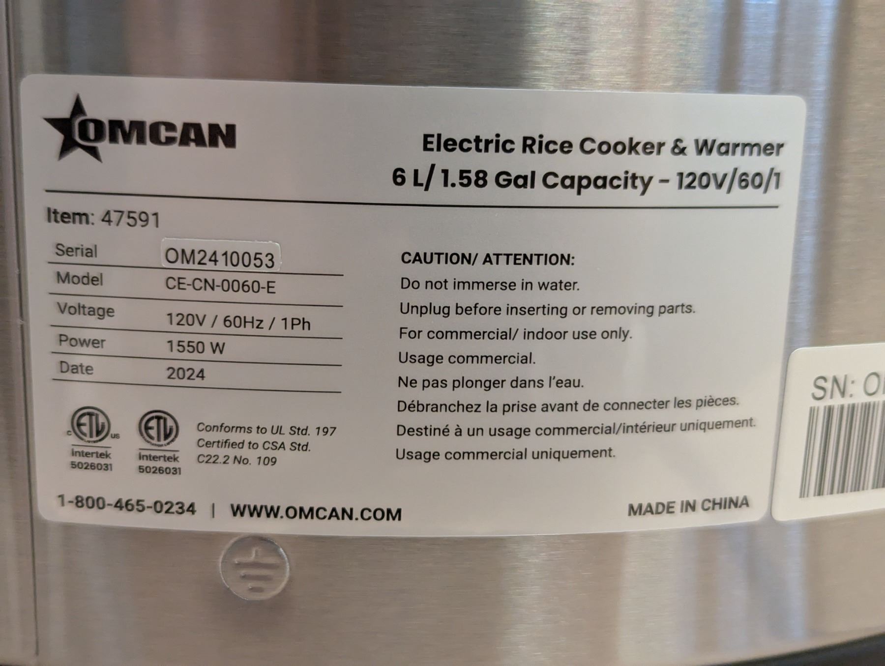 Commercial 64 cup (13L) Electric Rice Cooker, Omcan 47591