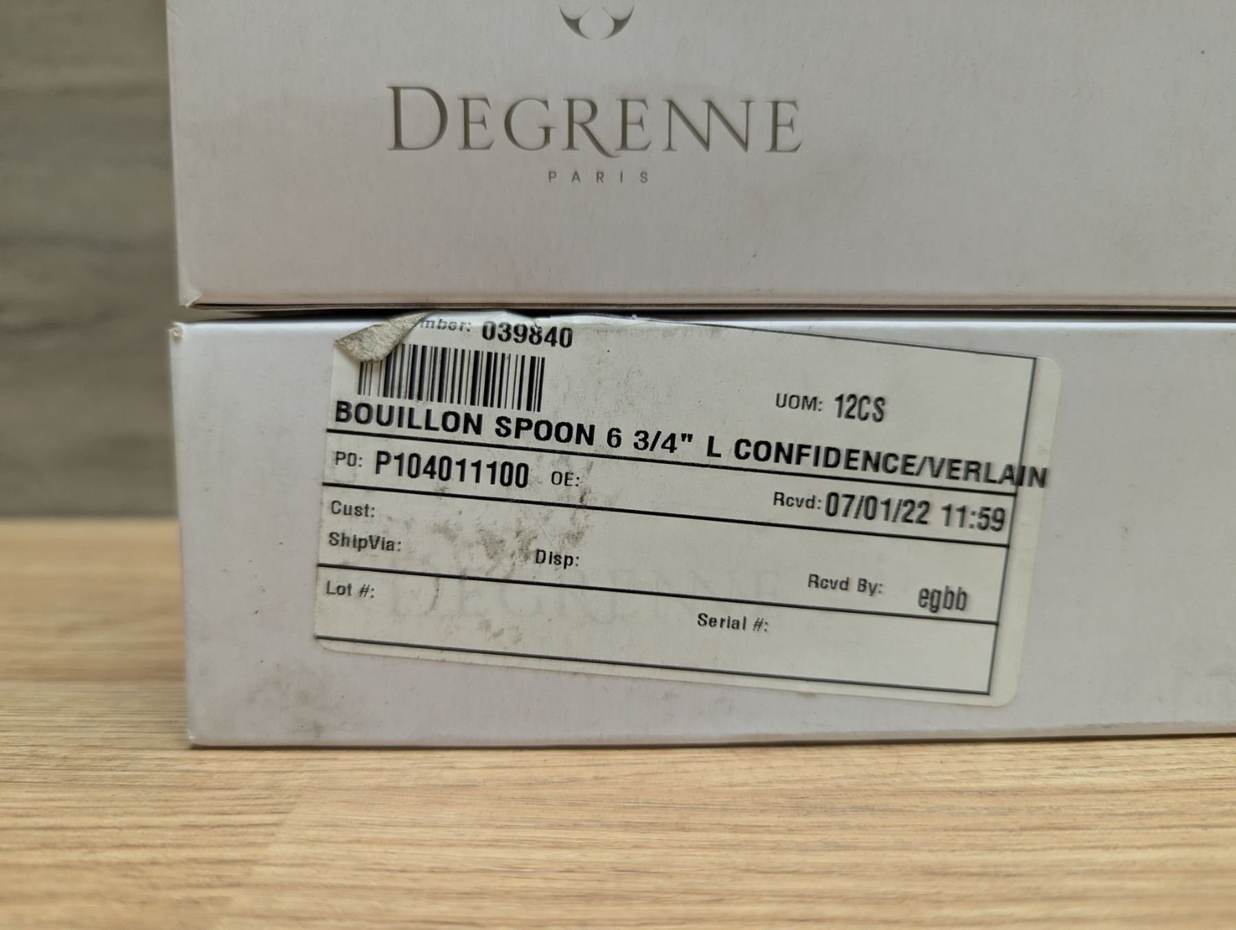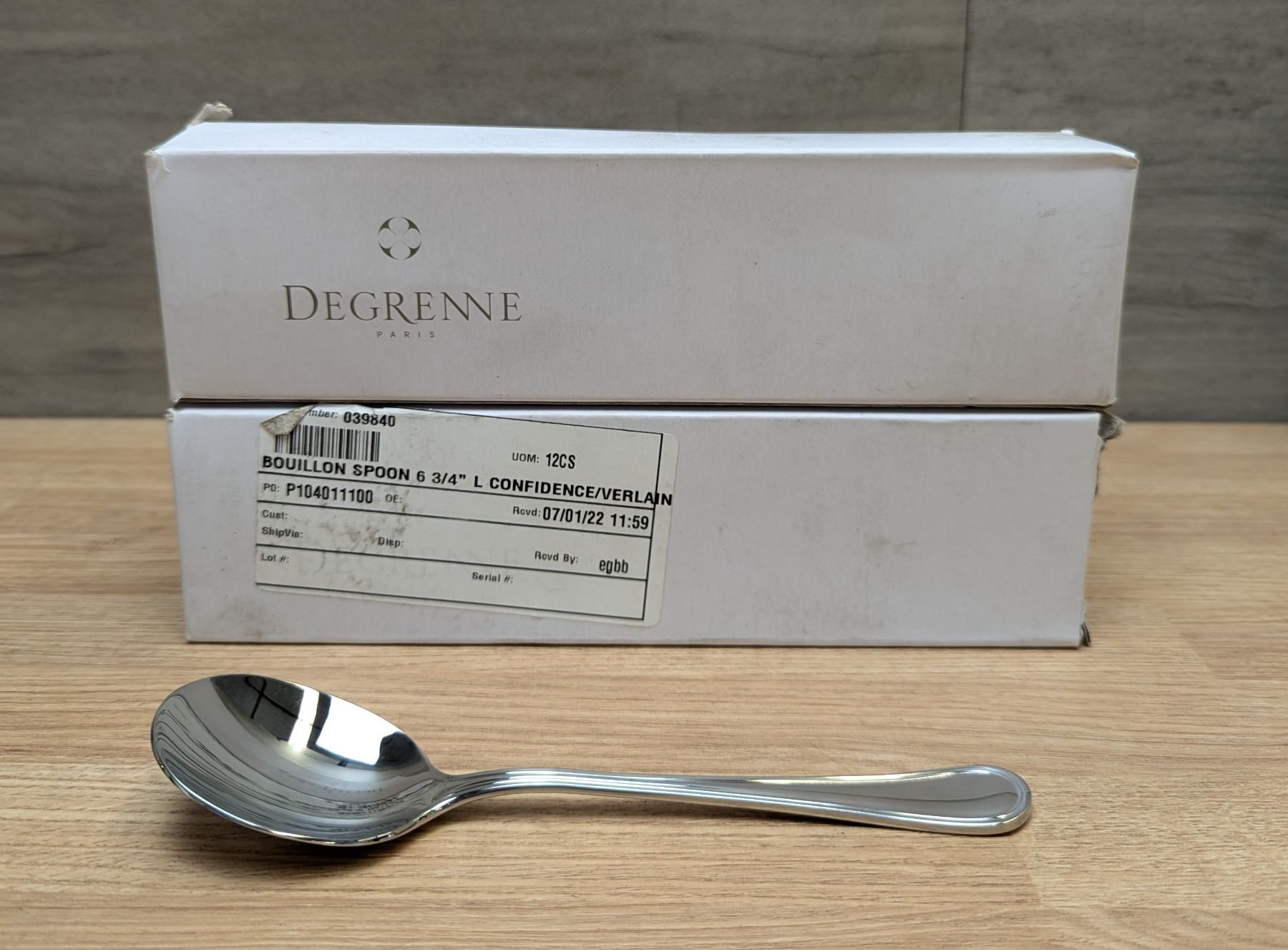 Degrenne 6-3/4" Bouillon Spoons - Lot of 24 (2 Boxes) |Front B