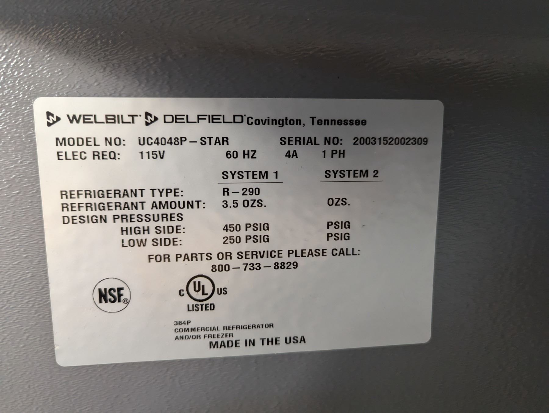 [Used, Tested/Working,] Serial# 2003152002309, 48" x 28-3/8" x 32", 115V/60Hz/1Ph