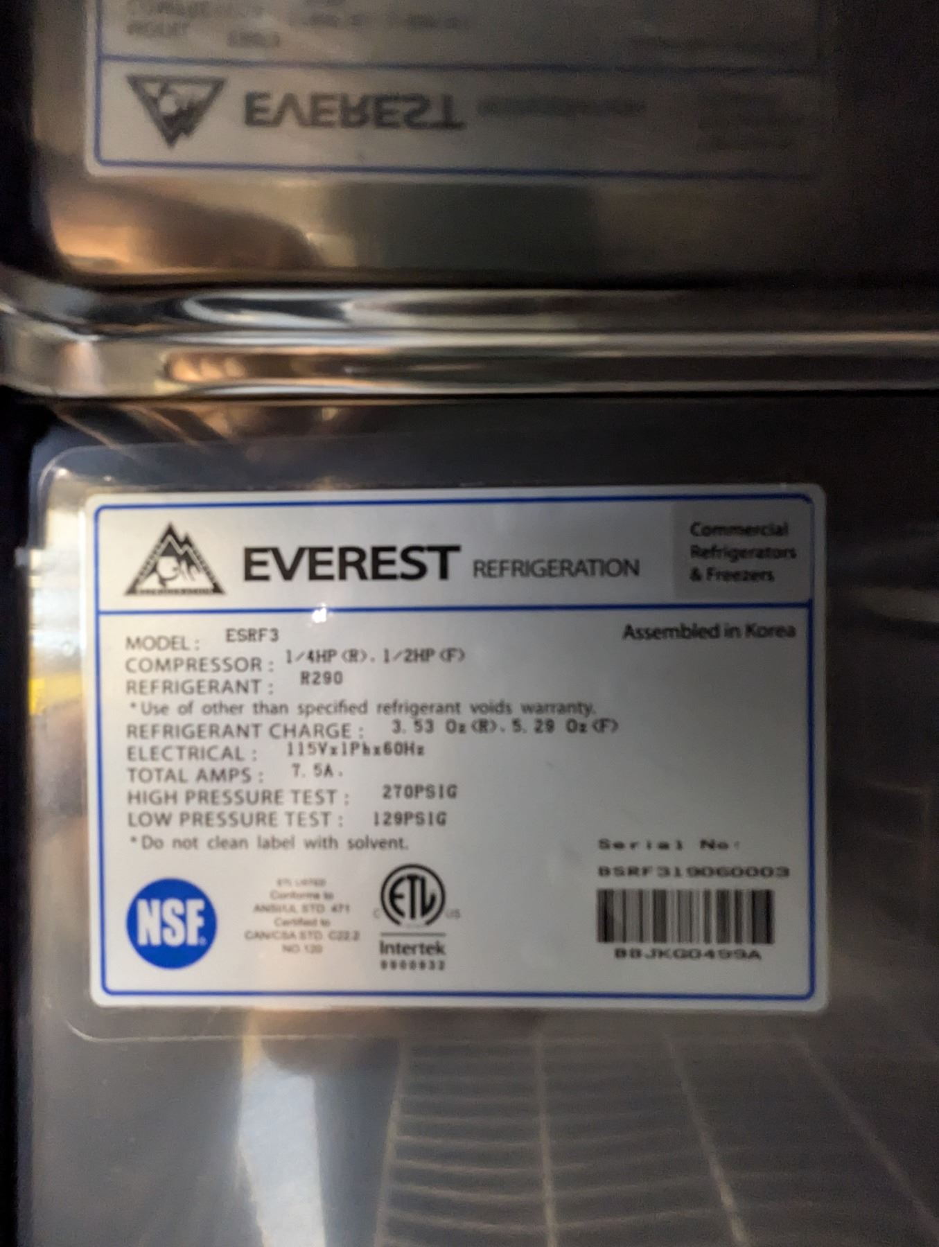 Everest ESRF3 75" Dual Temp Cooler/Freezer Combo |60003/R2