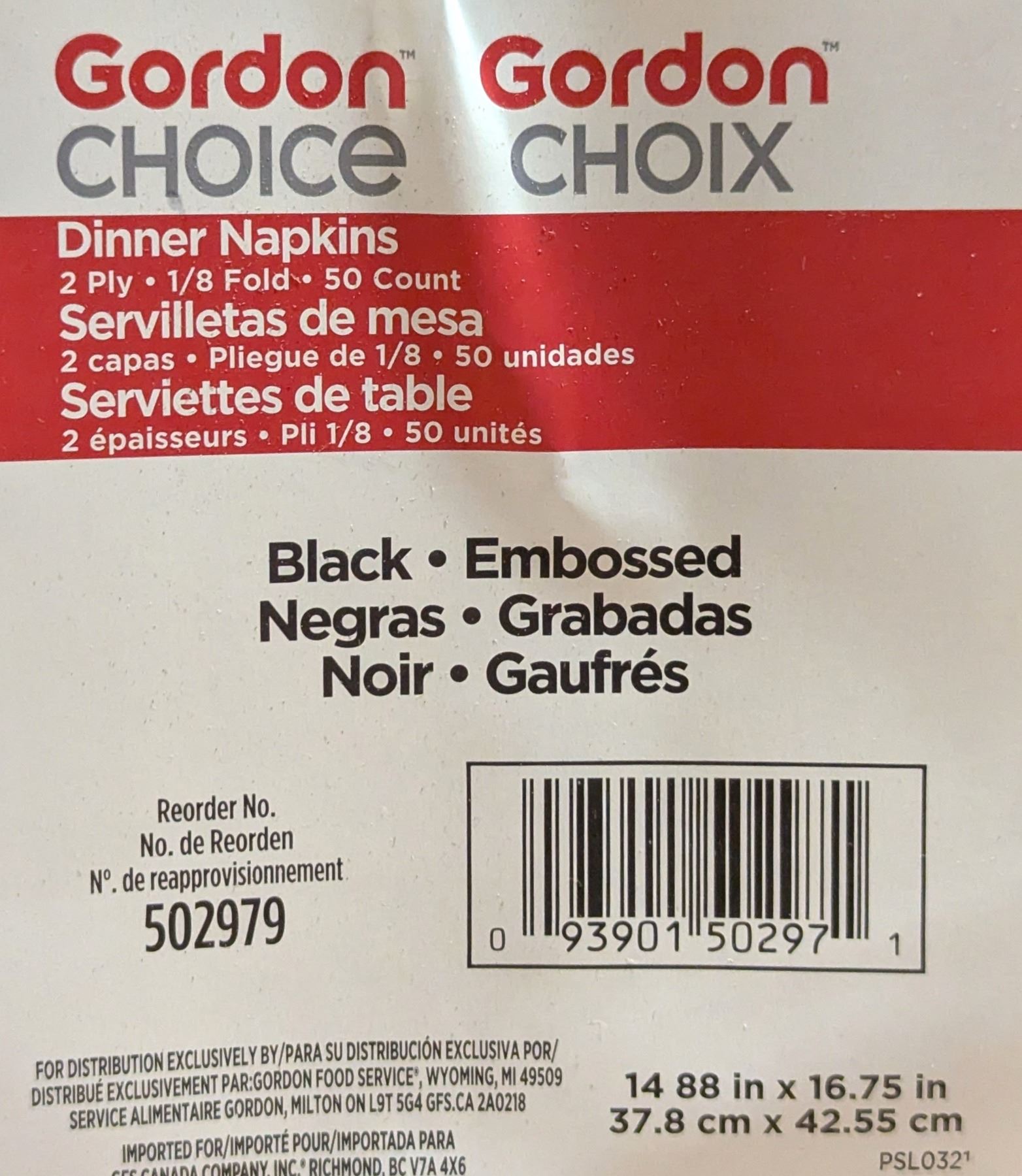 Gordon Choice Dinner Napkins Black 50cnt - Lot of 12|L2-3