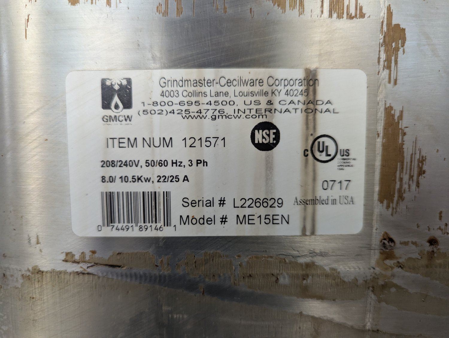 [Used, Tested/Working,] Serial# L226629, Item: 121571, 30.5" x 18" x 19.75", 208-240V/50-60Hz/3Ph