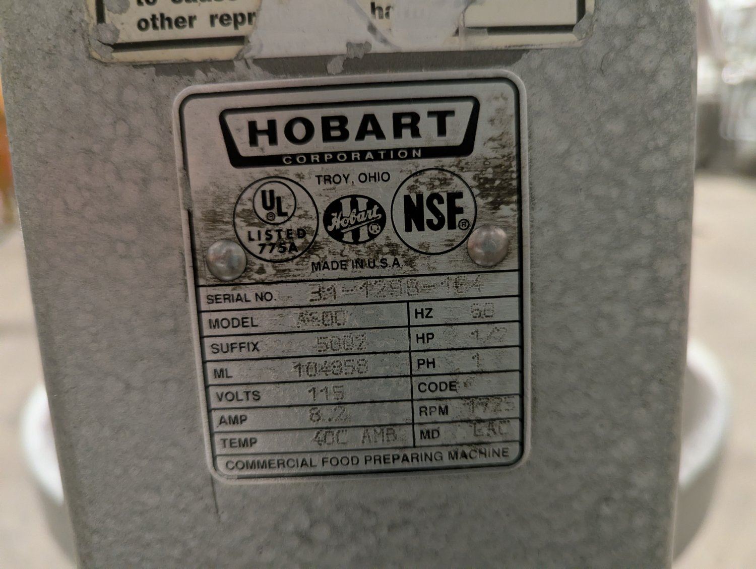 Hobart A200 20qt All Purpose Mixer W/Whip, Beater & Hook