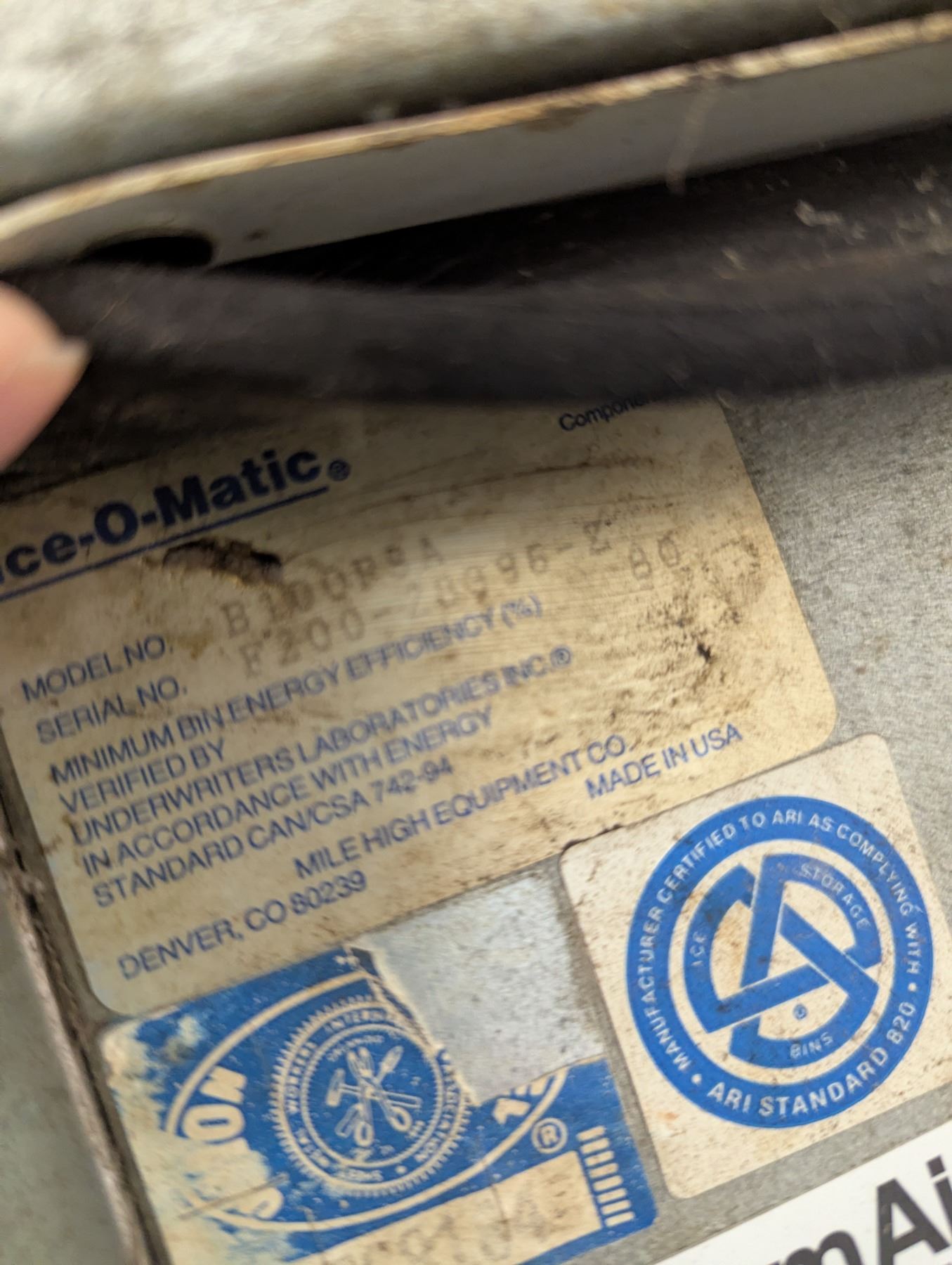 [Used, Tested/Working,] Serial# A03988B, 48" x 32" x 72", 208-230V/60Hz/1Ph, Ice bin: B100PSA