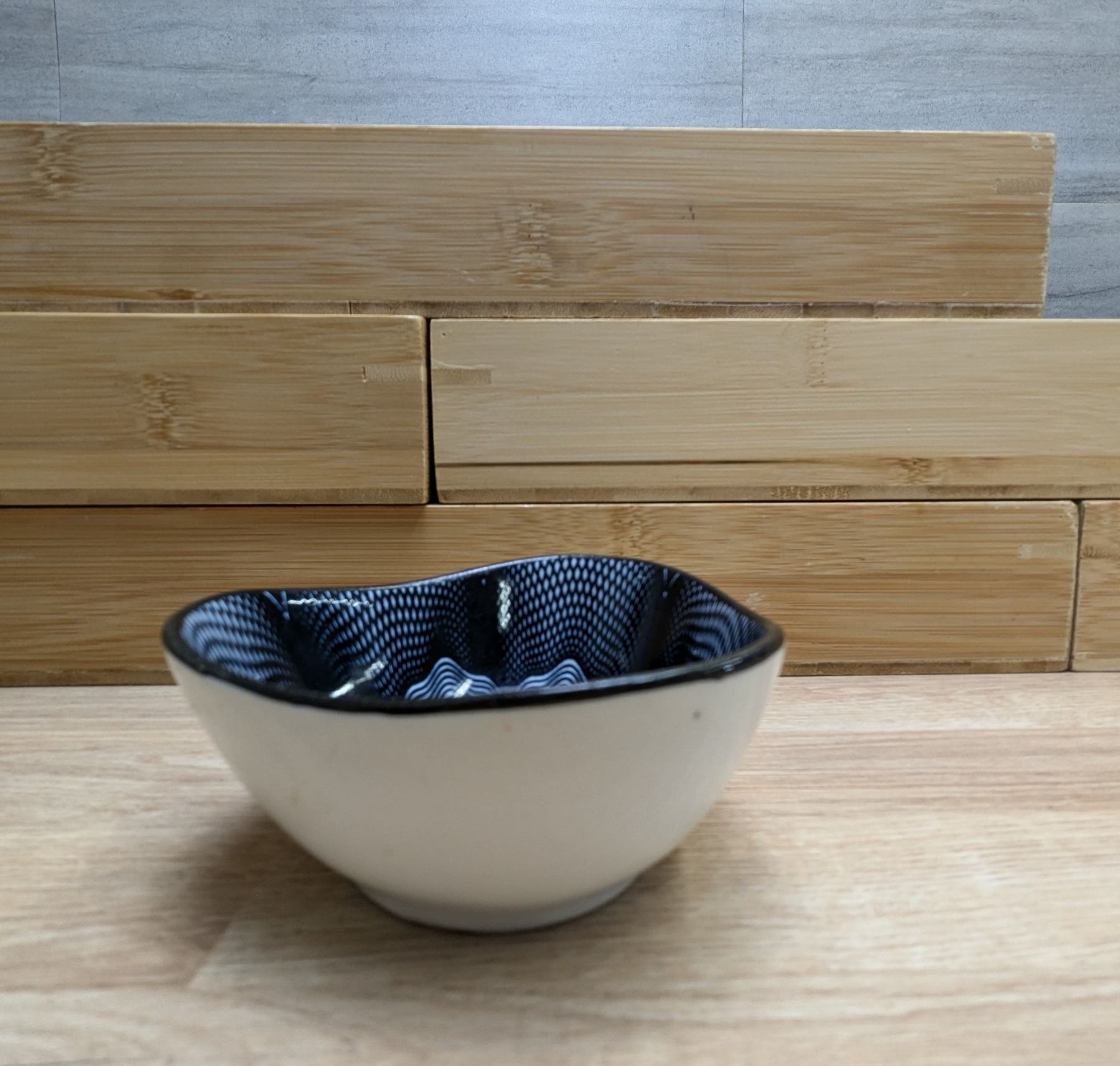 Japanese 9 Ceramic Bowls With Wooden Serving Trays - Lot of 6 Sets |Front B/JWZ-2