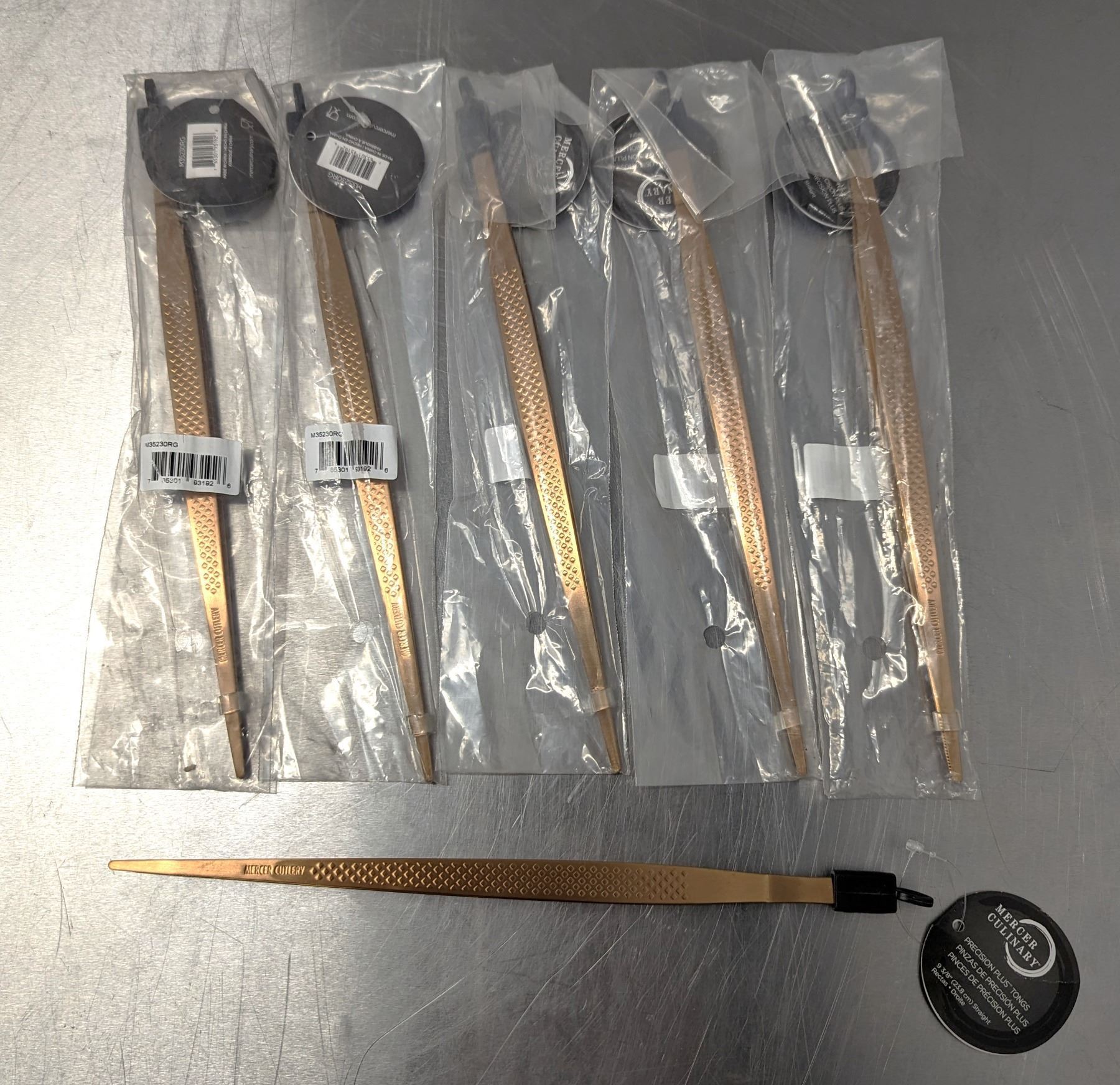 Mercer Culinary 9" Rose Gold Tweezer Tongs - Lot of 6 &Front B