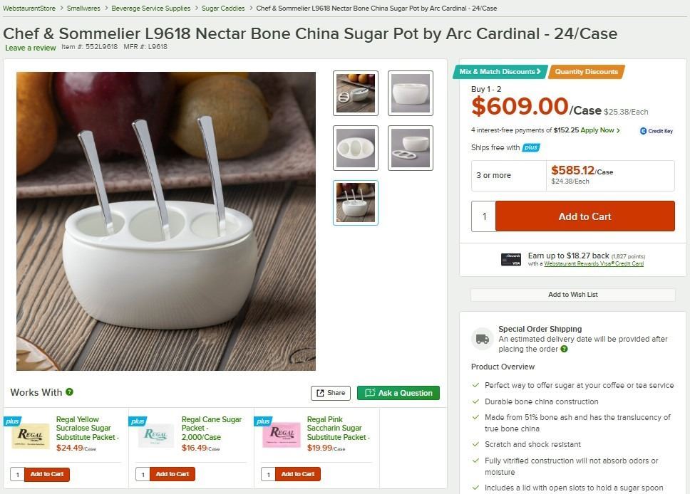 Nectar Sugar Pots with Lids, Arcoroc L9618 - Lot of 24 (48pcs)