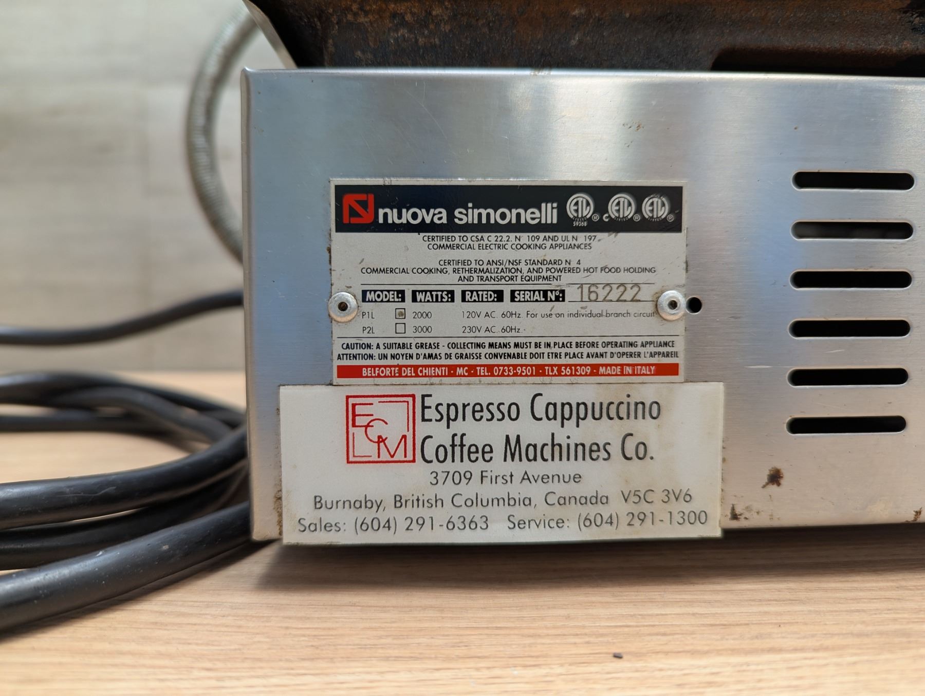 Nuova Simonelli P1L Single Plate Panini Grill |6222/ML4-1
