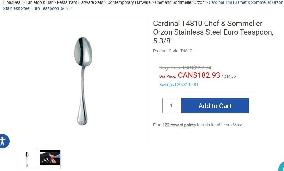 Orzon 5-3/8" Euro Teaspoons, Chef & Sommelier T4810 - Lot of 36