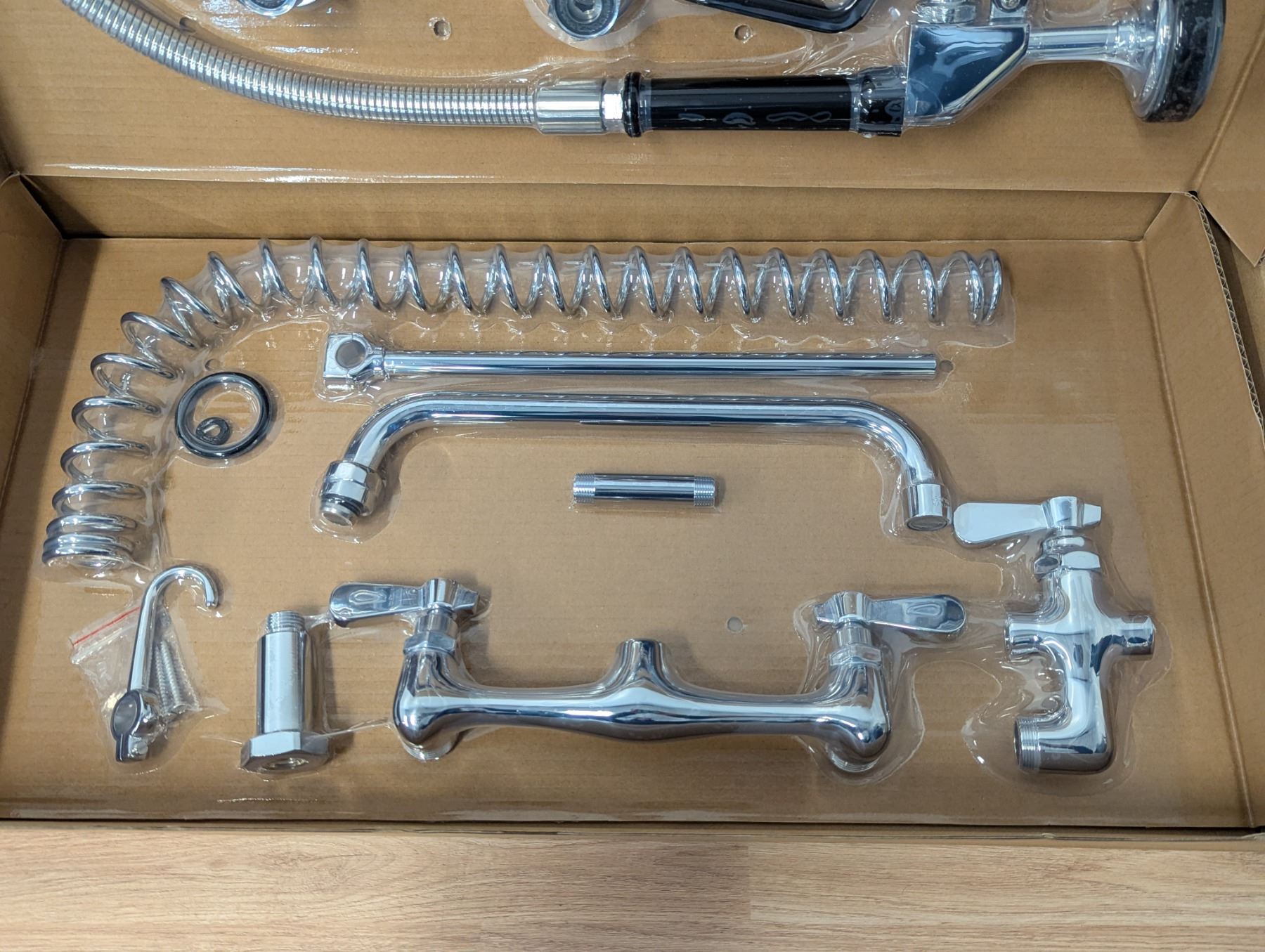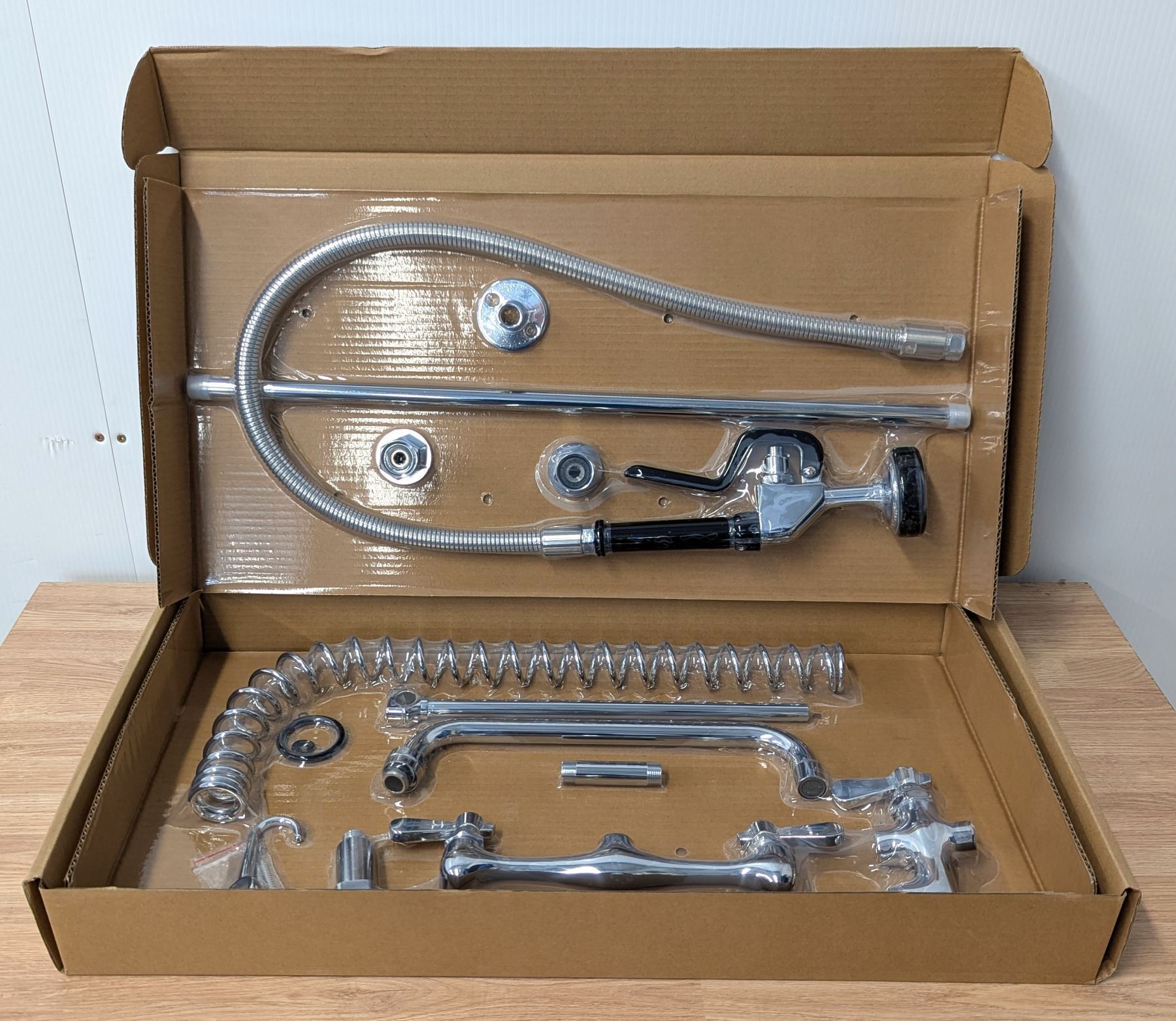 [New In Box,] Wall bracket, spring-action flexible hose, heavy-duty spray valve