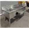 [Used,] Overall: 60" x 25" x 33-1/'2", Sink tub: 10" x 14" x 10", Ice Bin: 20" x 20" x 10"