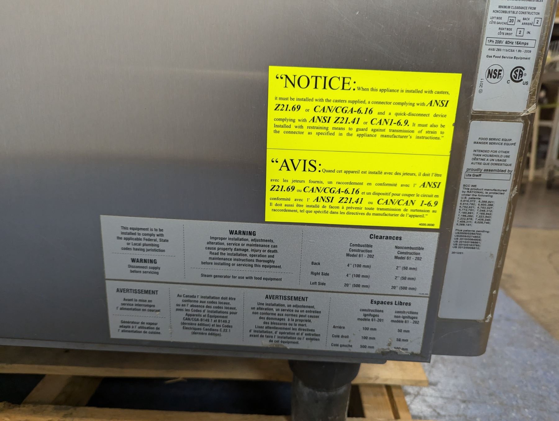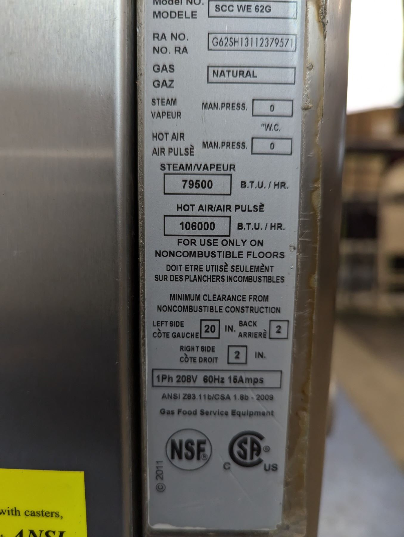 [Used, Tested/No Error Codes, Missing Hose, No Racks,] Serial# G62SH13112379571, Natural gas, 42" x 38-1/2" x 34", 208V/60Hz/1Ph