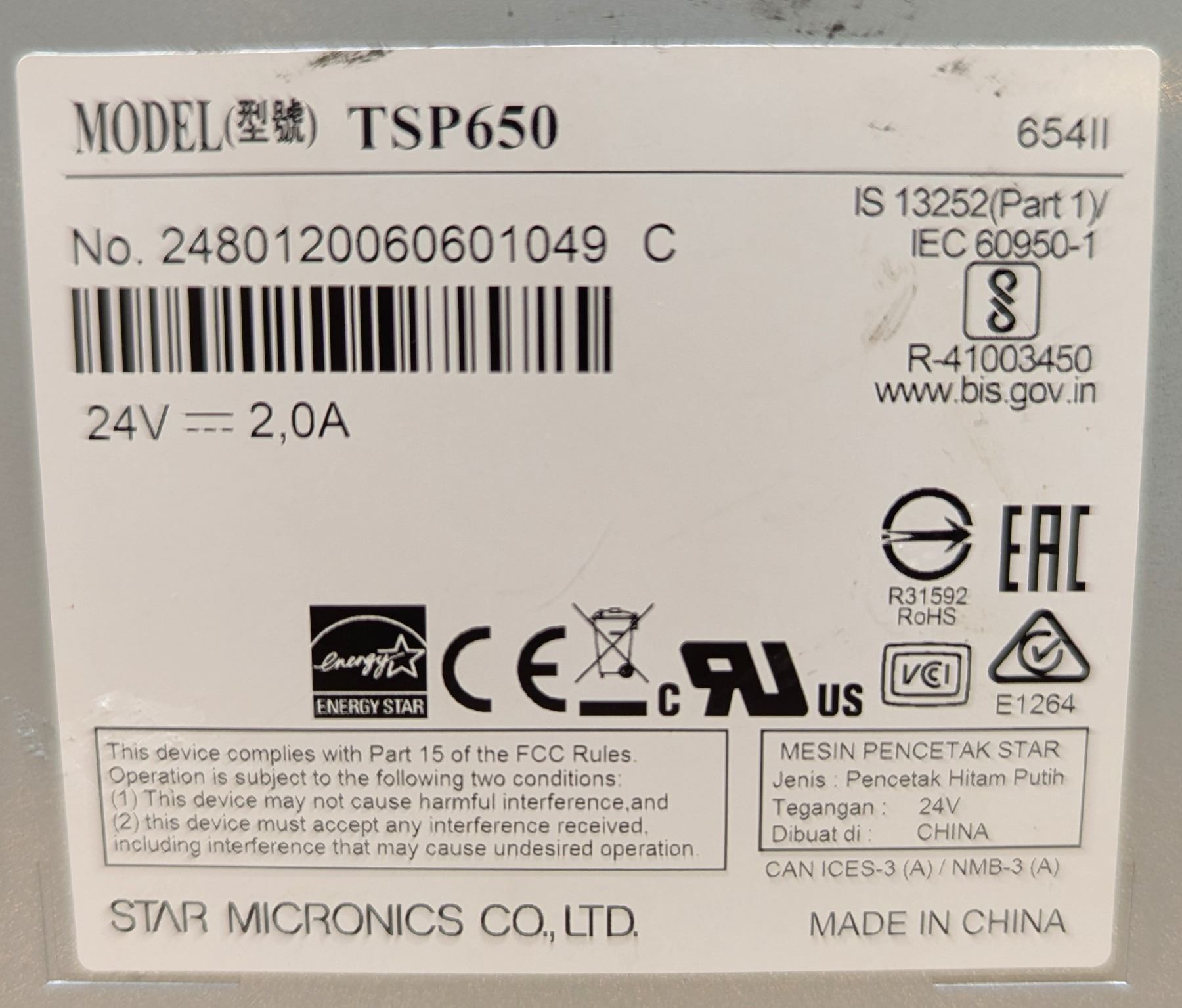 [Used, Tested Only Turn On/Off,] Model: TSP650, Come with a AC adapter & a power cord